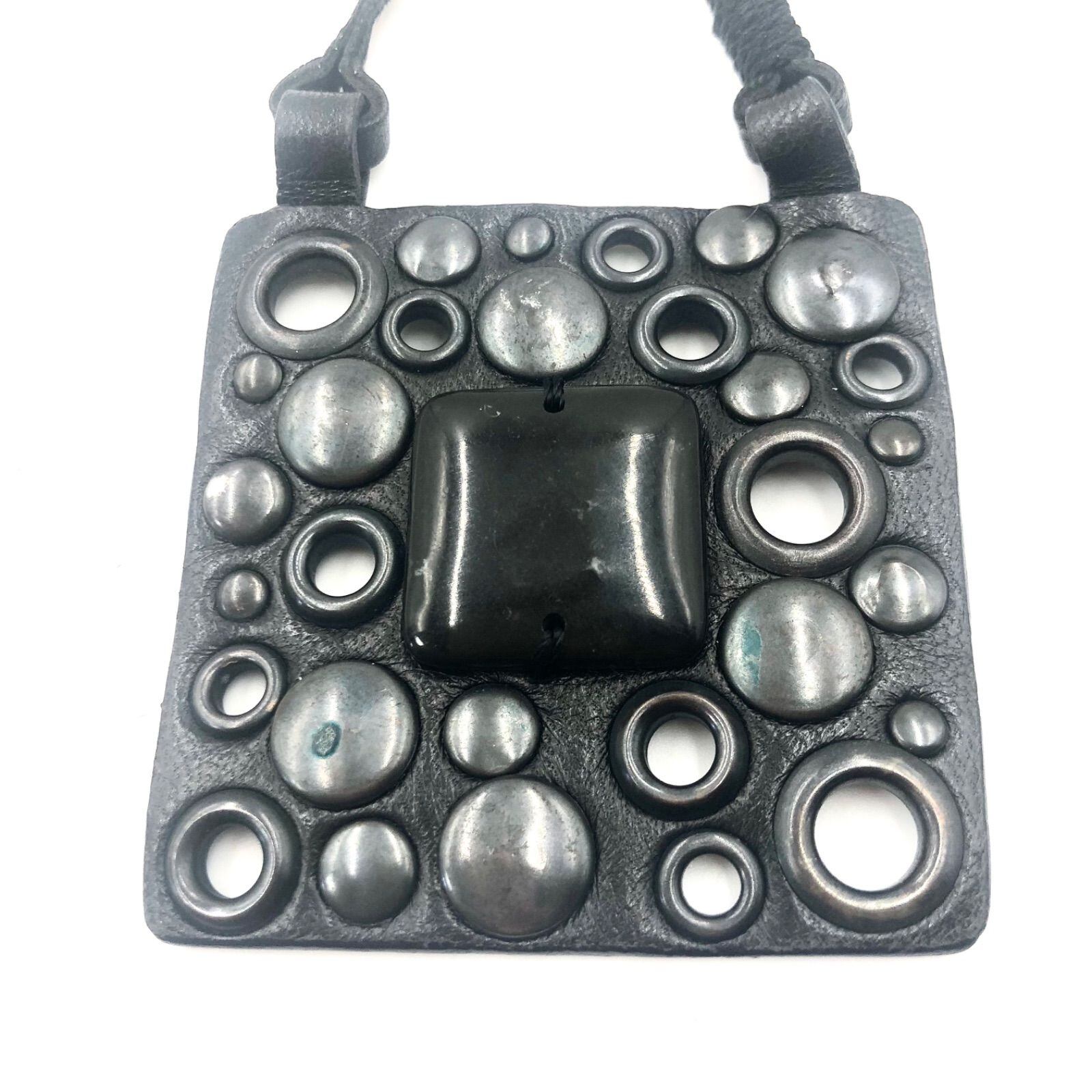 ■美品■超希少ヴィンテージ■PRADA プラダ レザーネックレス ネックストラップ スタッズ パンチング ブラック