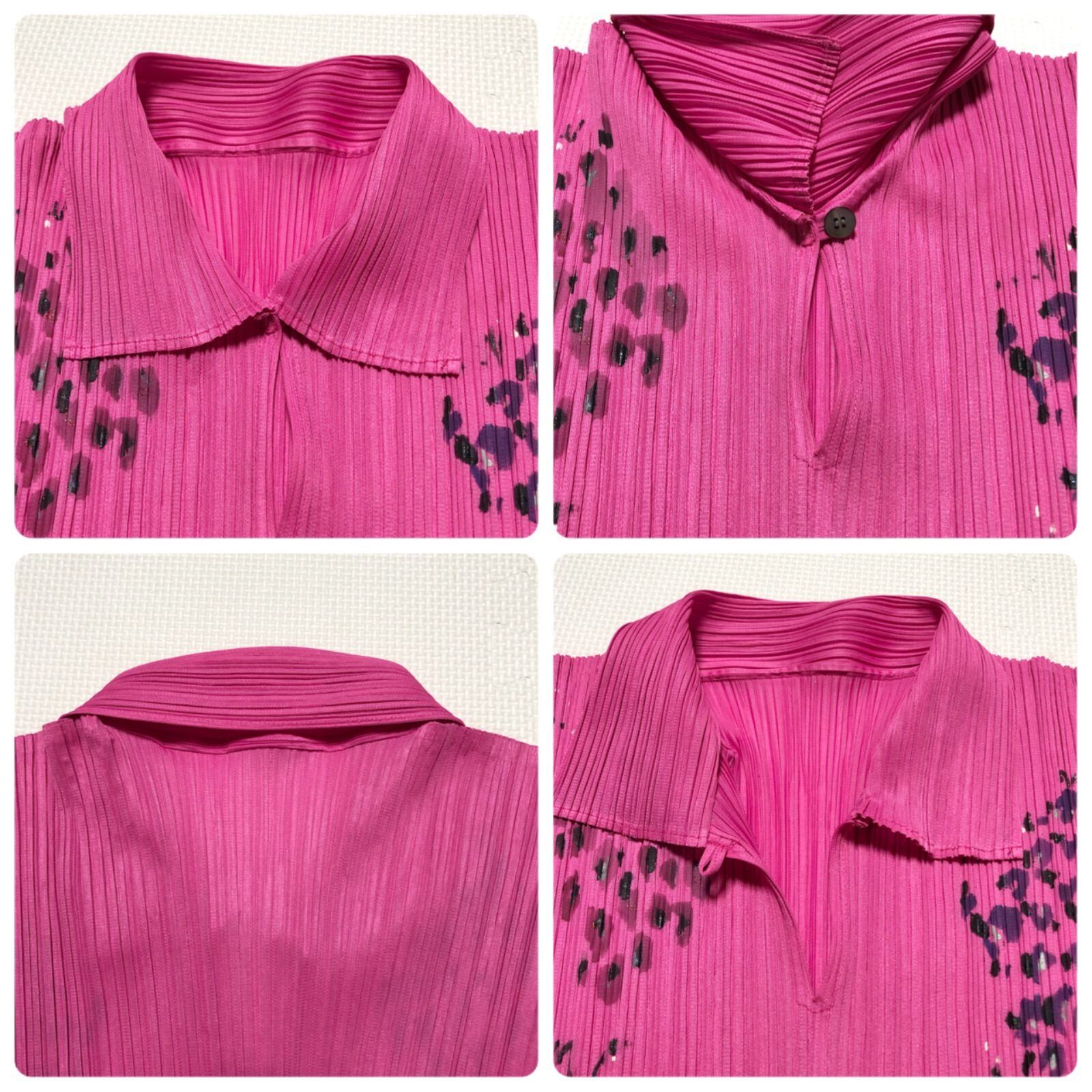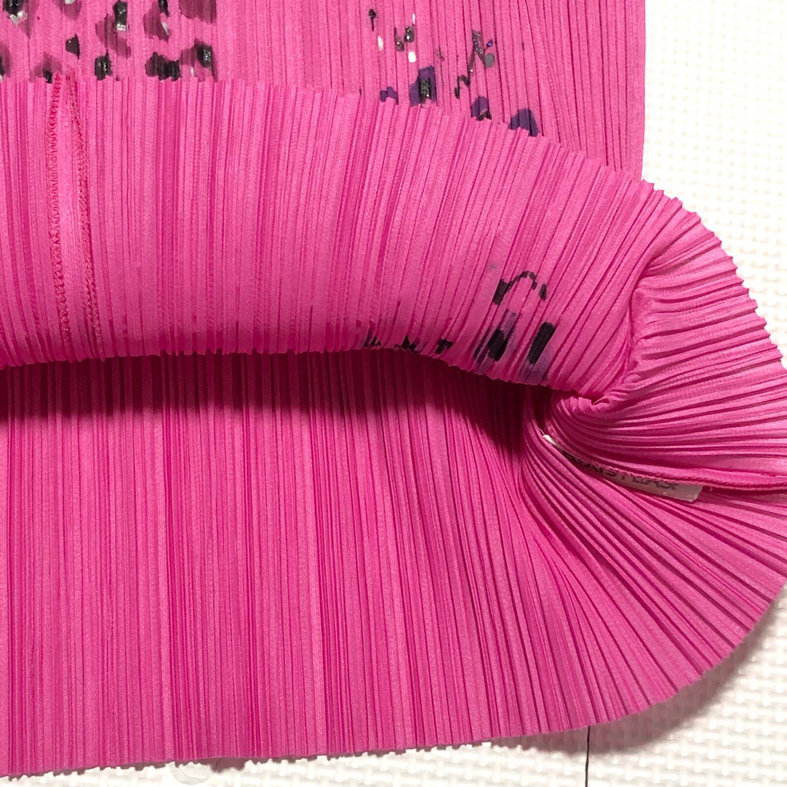 ■美品■PLEATS PLEASE プリーツプリーズ ISSEY MIYAKE イッセイミヤケ プリーツブラウス ノースリーブ ピンク 総柄 ストレッチ素材 伸縮性あり レディース フリーサイズ