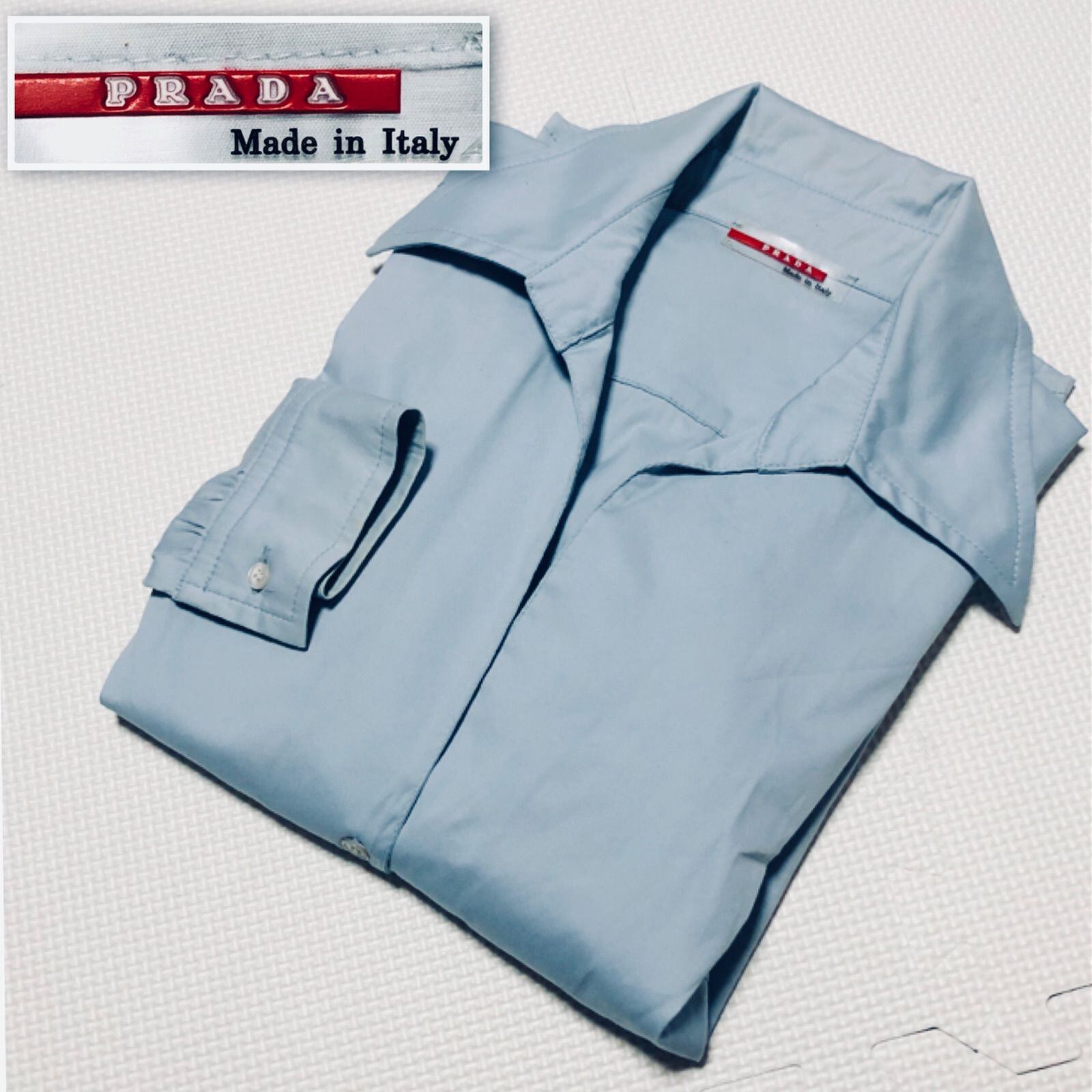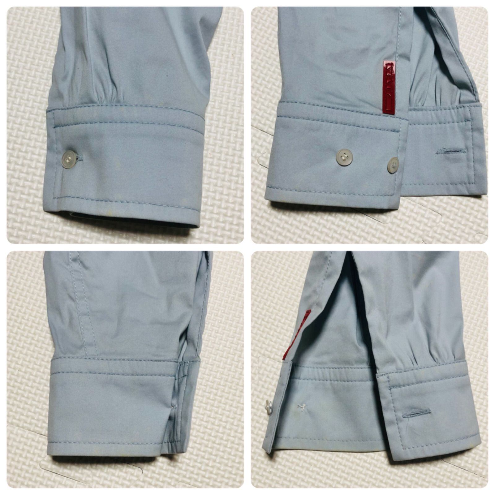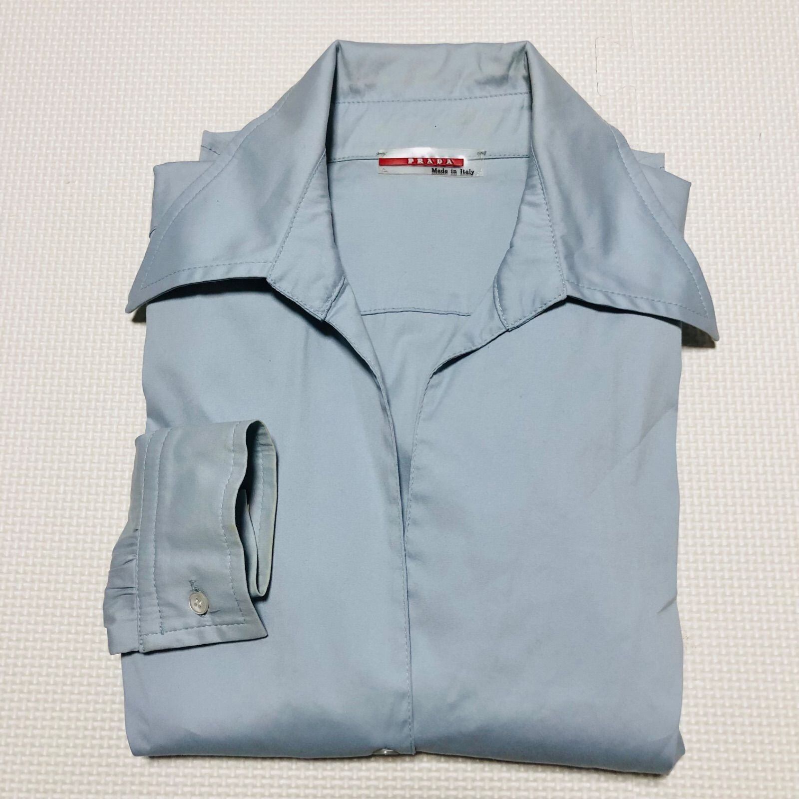 PRADA SPORT プラダスポーツ 長袖シャツ ワイシャツ ブラウス ウエスト内側リボン紐付き sizeM イタリア製 ブルー系 レディース