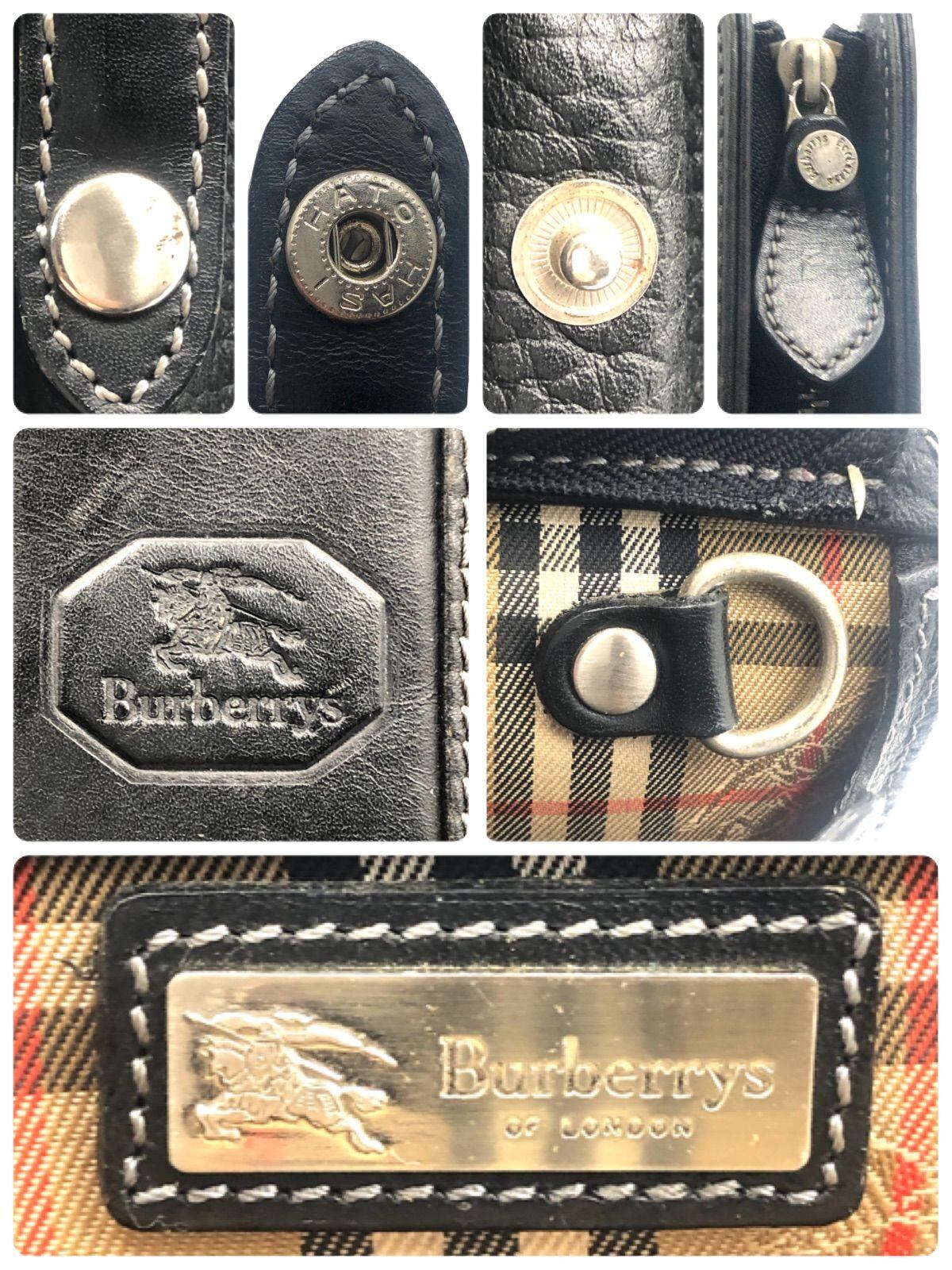 ■美品■Burberrys バーバリー クラッチバッグ セカンドバッグ レザー 本革 ロゴ型押し ブラック×内張りノバチェック+シャドーホース メンズ