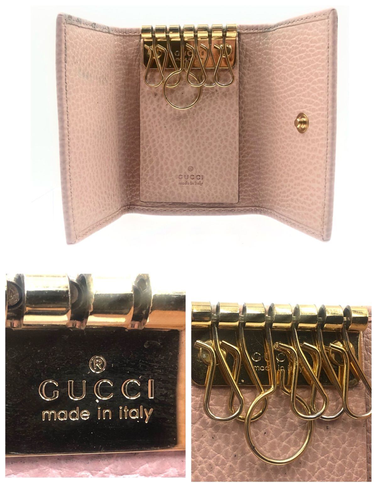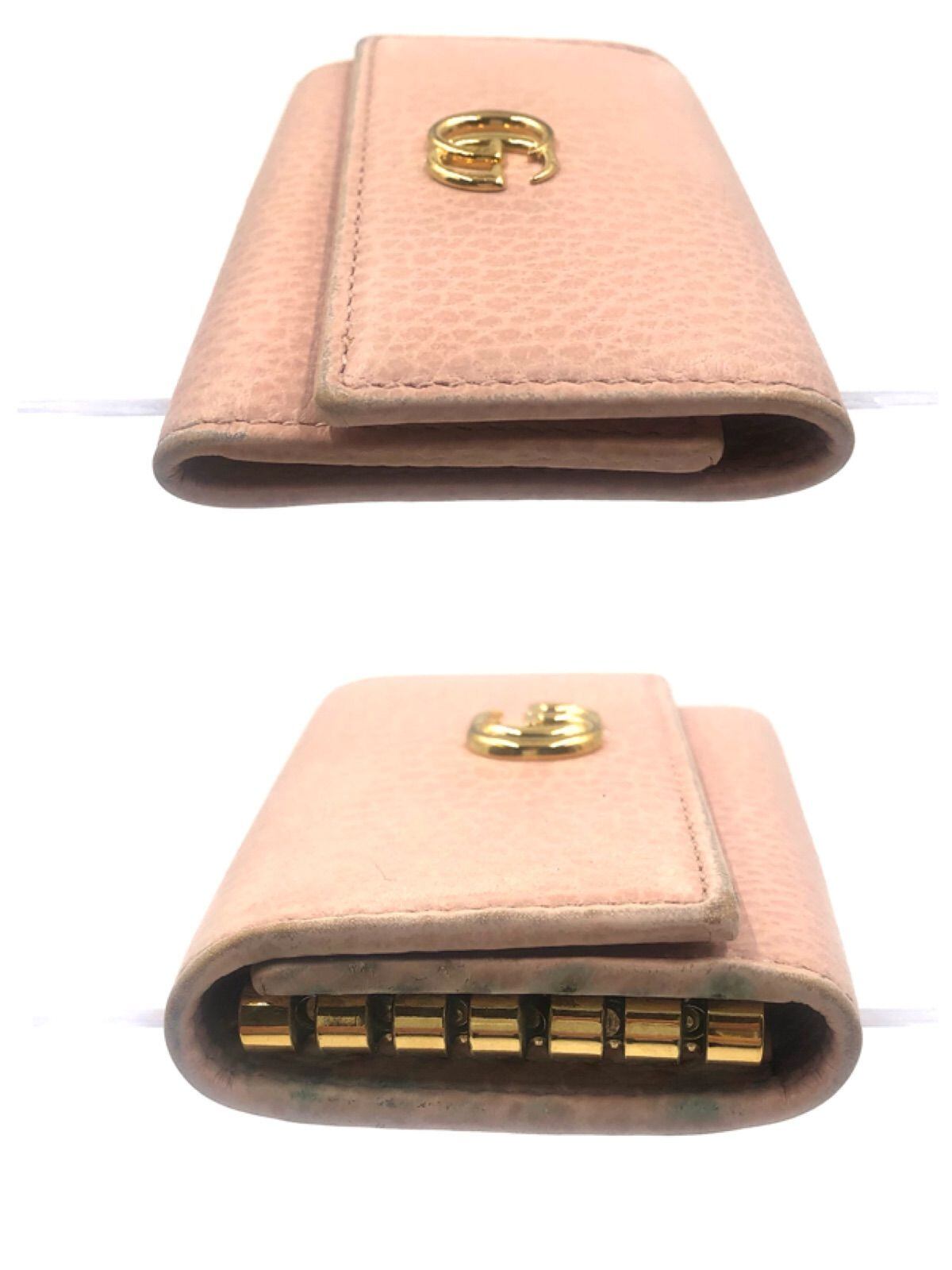 ■良品■GUCCI グッチ GGマーモント 6連キーケース レザー 本革 ピンクベージュ ゴールド金具 イタリア製 刻印あり 456118・2149 レディース