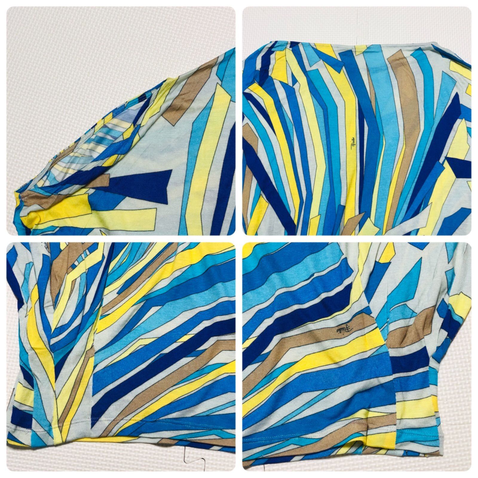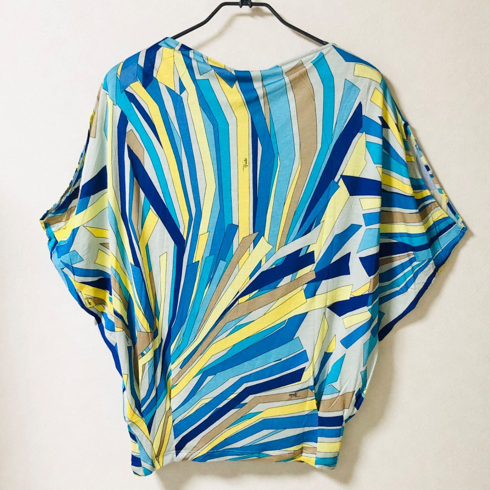 ■未使用タグ付き■EMILIO PUCCI エミリオプッチ ドルマンカットソー プッチ柄 総柄 size ITA 38(M~L) イタリア製 ブルー系マルチカラー ビスコース85%シルク15% レディース