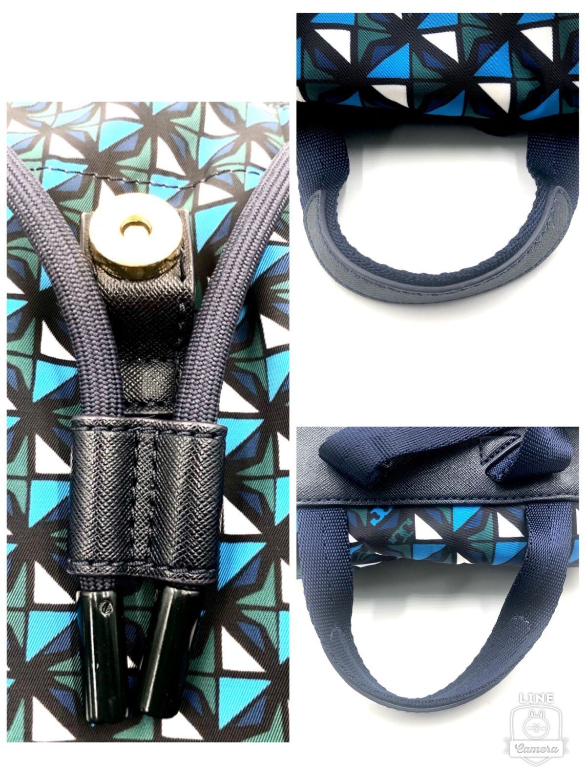■極上美品■TORY BURCH トリーバーチ ロゴ ダイヤモンド 総柄 巾着リュックサック バックパック デイパック ブルー×グリーン×ホワイト×ブラック ナイロンキャンバス×レザー ゴールド金具