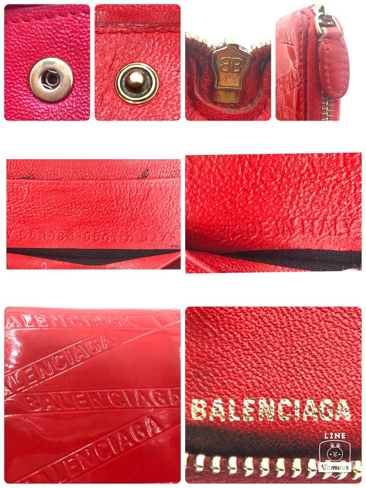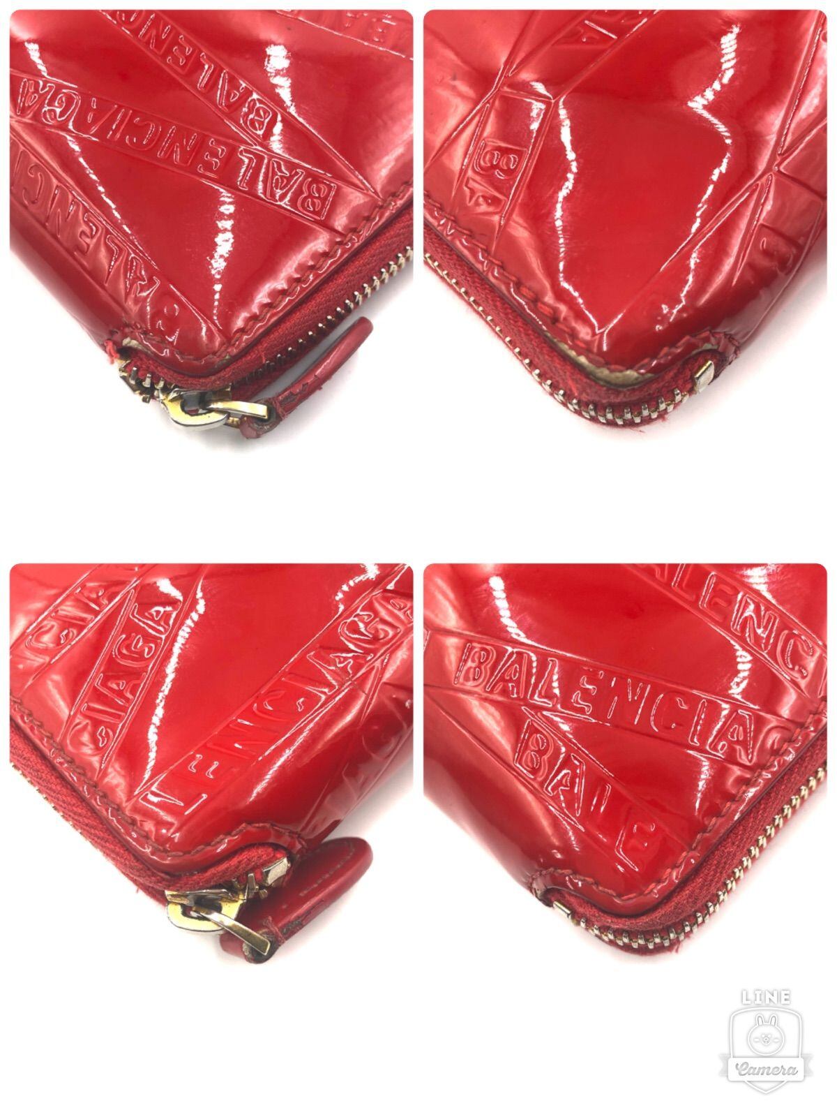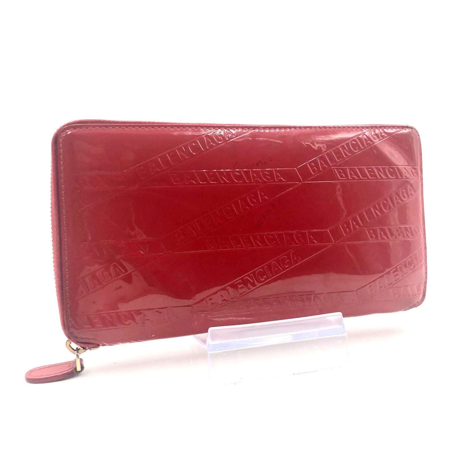 ■希少■BALENCIAGA バレンシアガ ロゴ総柄 ラウンドファスナー 長財布 エナメル パテントレザー レッド ゴールド金具 イタリア製 刻印あり レディース