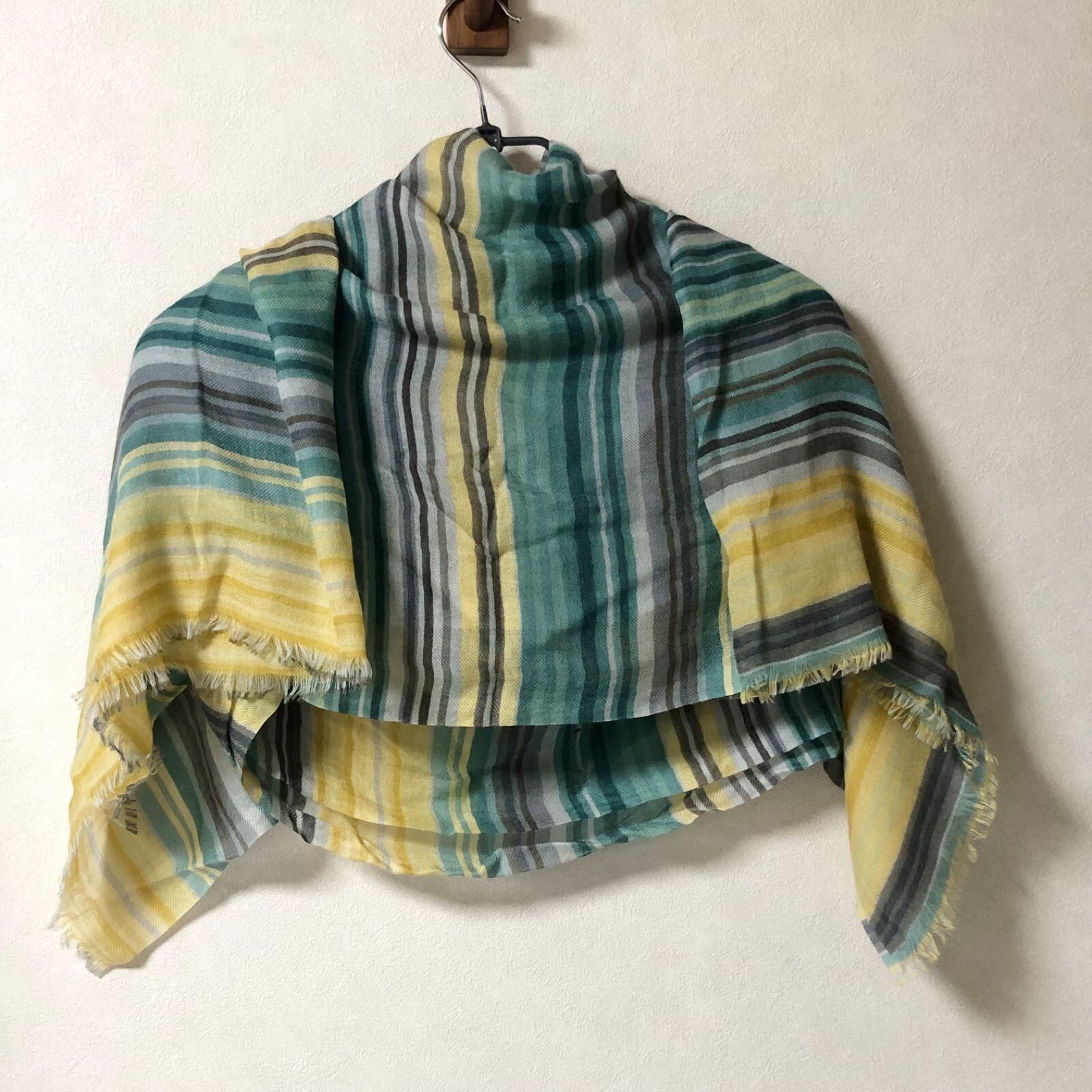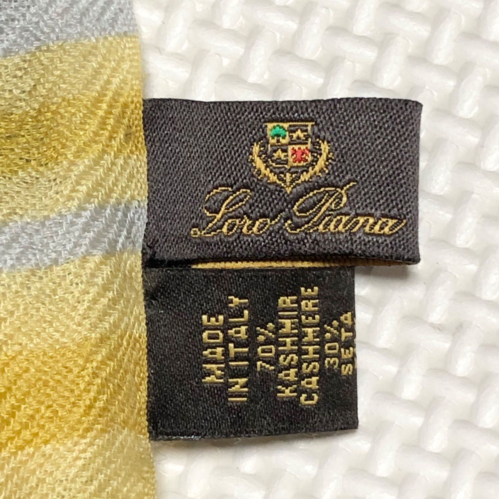 ■希少カシミヤ70%■Loro Piana ロロピアーナ 大判ストール カシミヤ×シルク イタリア製 ボーダー グリーン×イエロー 透け感 194cm×84cm