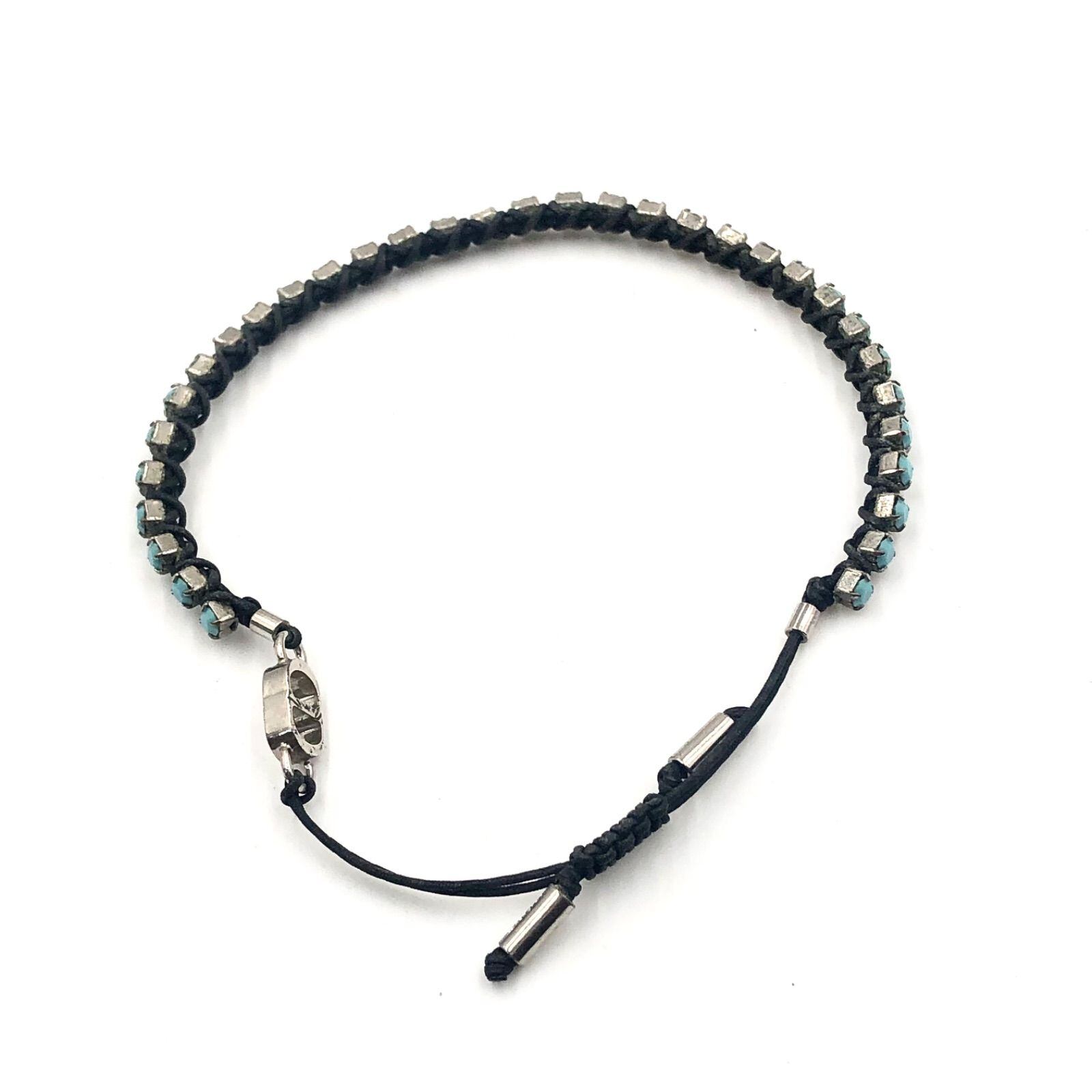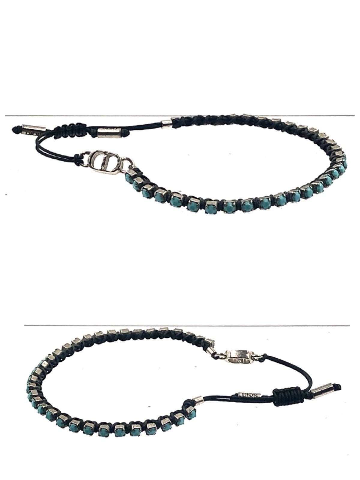 Dior ディオール CDロゴ ターコイズブルー カラーストーンブレスレット テクニカルロープ×クリスタル 腕周り25cm ライトブルー×シルバー×ブラック レディース