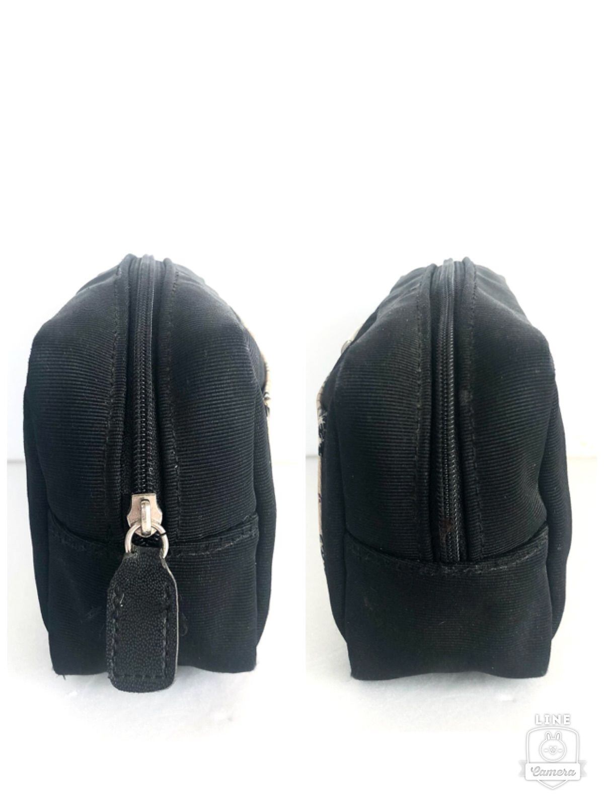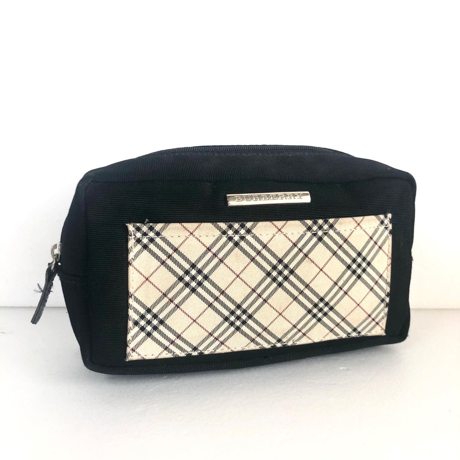 BURBERRY バーバリー ポーチ ノバチェック ベージュ×ブラック シルバー金具 キャンバス ロゴ金具