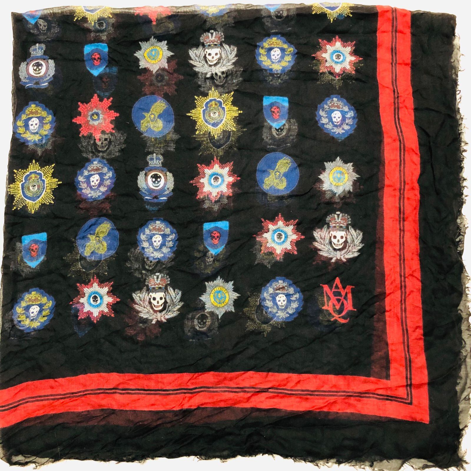 Alexander McQUEEN アレキサンダーマックイーン 大判スカーフ アイコンスカル 総柄 ブラック×マルチカラー 128×128cm