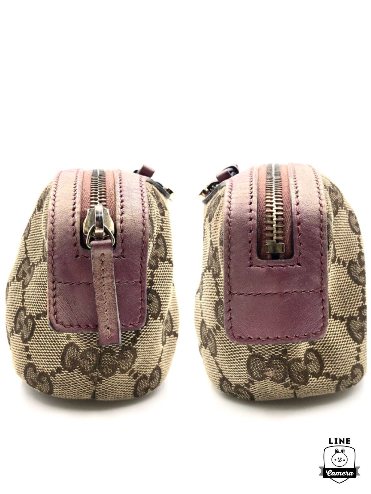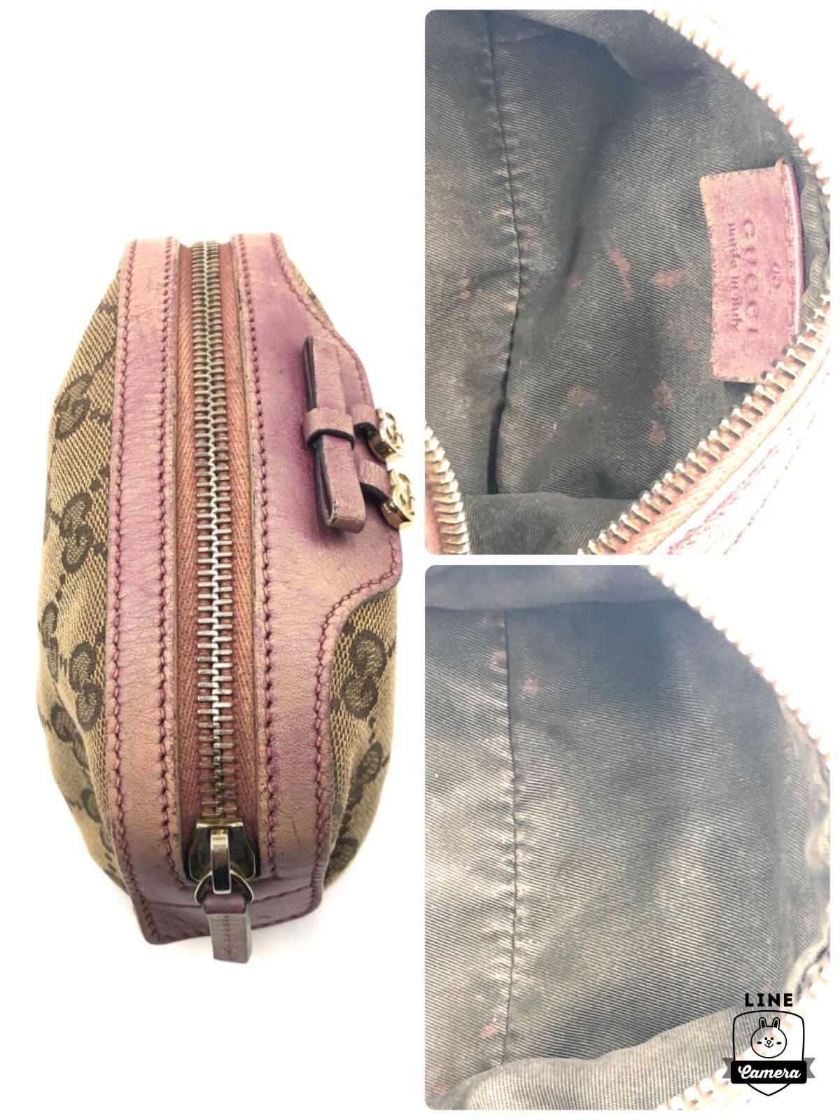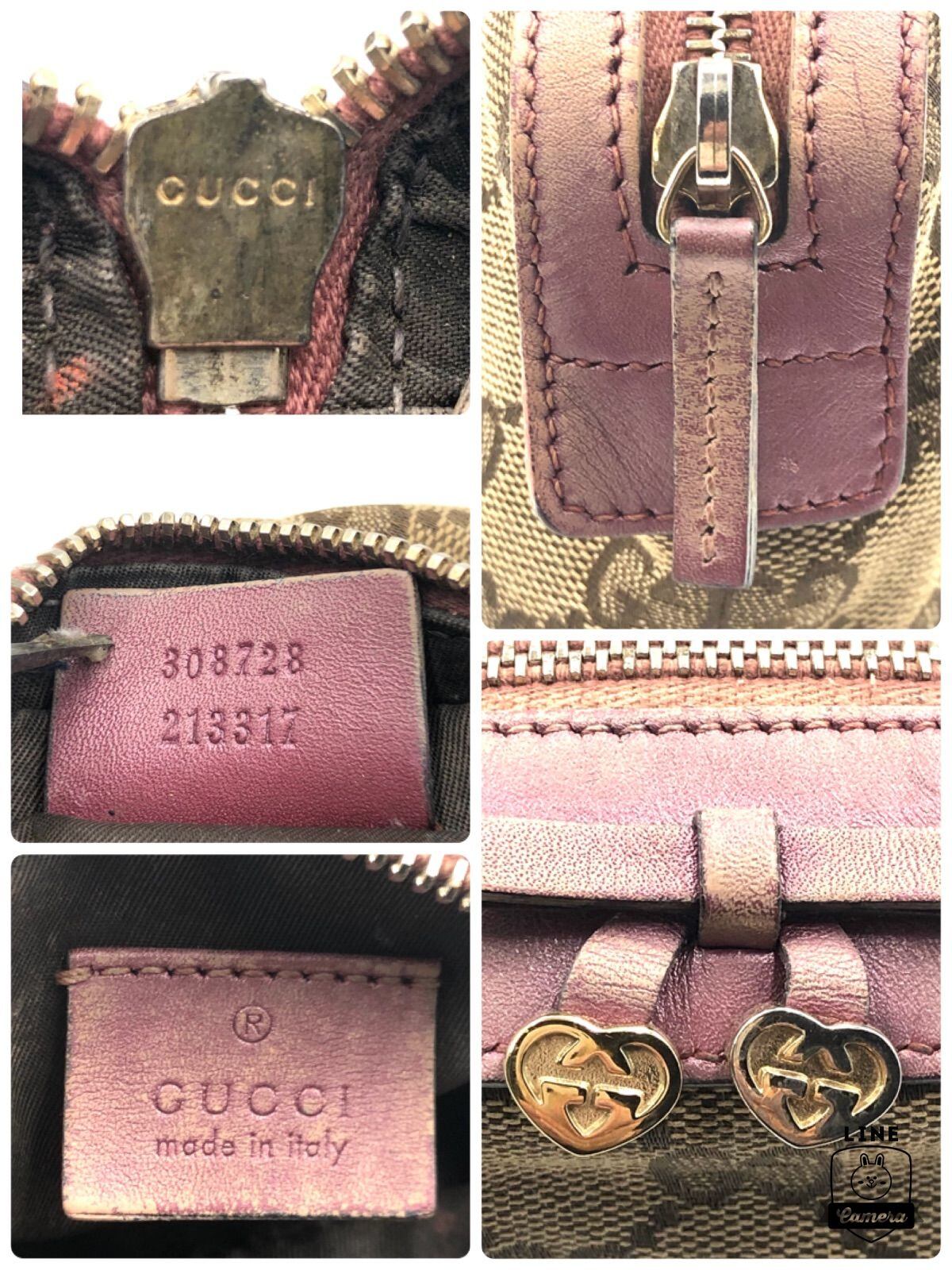 ■良品■希少デザイン■GUCCI グッチ GGキャンバス×レザー コスメポーチ ハートシェイプインターロッキングG リボンモチーフ イタリア製 刻印あり 308728 213317 ベージュ×ピンク ゴールド金具 レディース 保存袋、箱、ショップカード付き