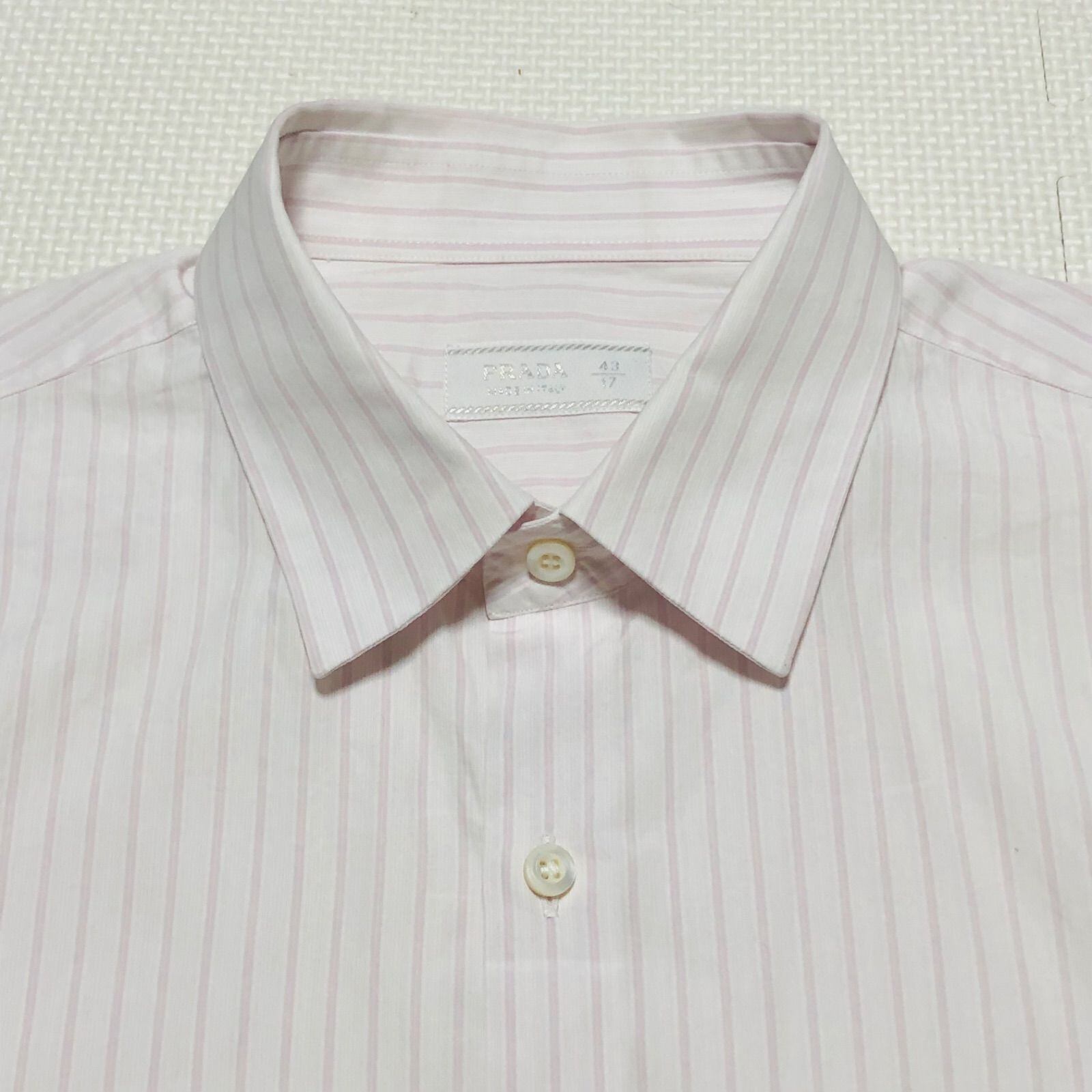 ■美品■希少■PRADA プラダ ワイシャツ ドレスシャツ 長袖 ストライプ 43/17 (XL相当) イタリア製 ピンク系 メンズ ビジネス