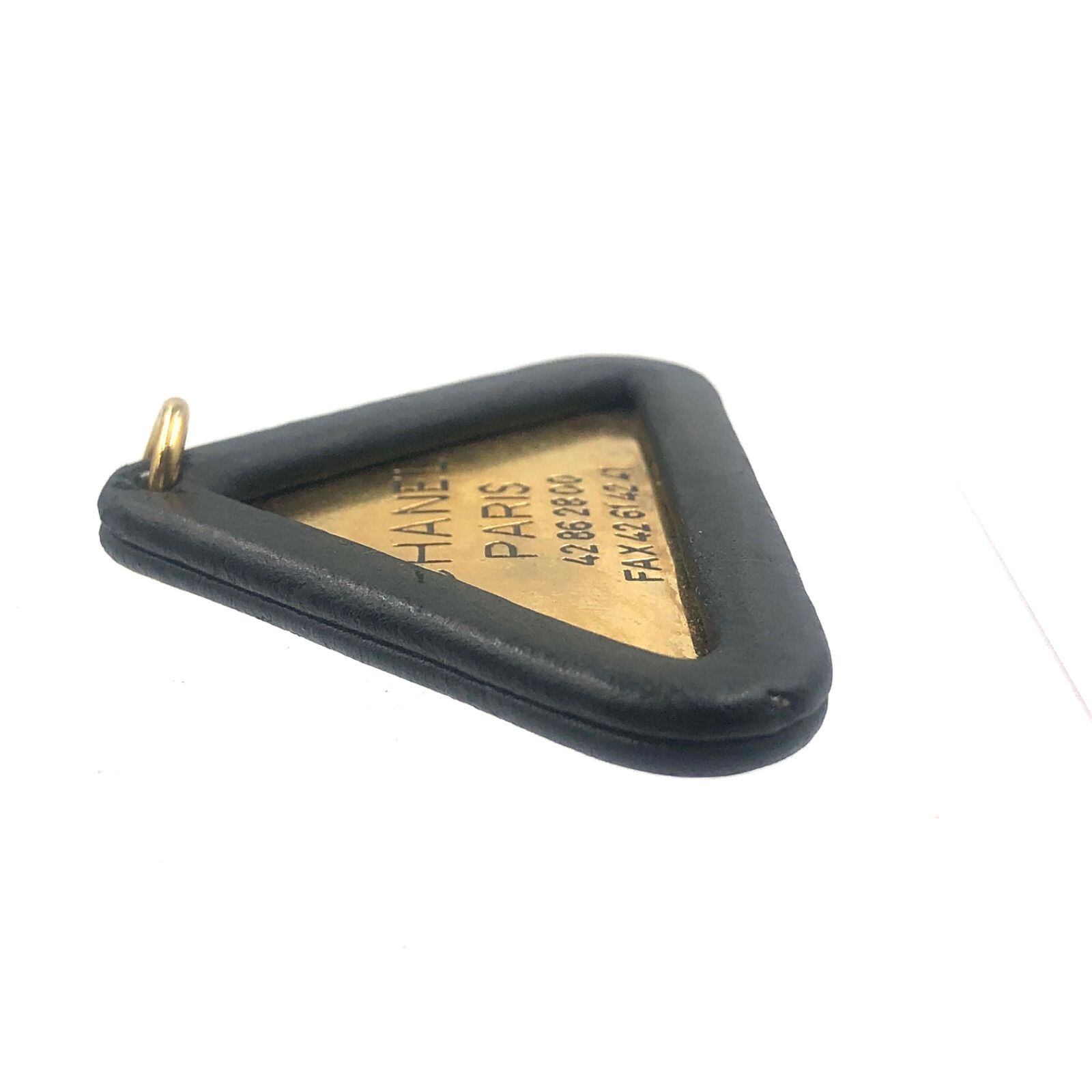■希少ヴィンテージ■CHANEL シャネル トライアングルチャーム ペンダントトップ キーホルダー(モチーフのみ) ロゴ ブラック×ゴールド金具 フランス製 刻印あり