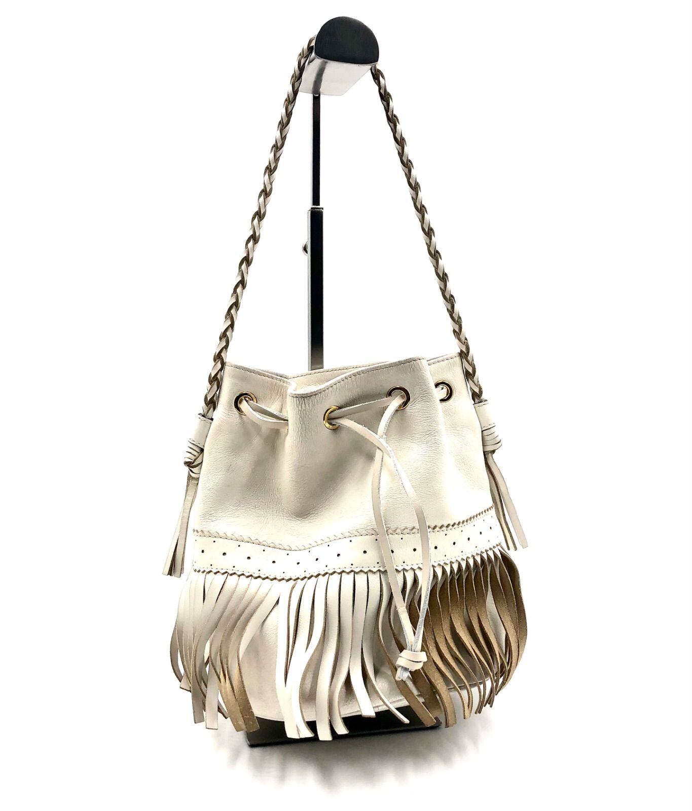■美品■J&M DAVIDSON ジェイアンドエムデヴィッドソン カーニバルM 2WAY フリンジバッグ ショルダーバッグ ホワイト系アイボリー ゴールド金具 スペイン製 巾着 レザー 本革 レディース