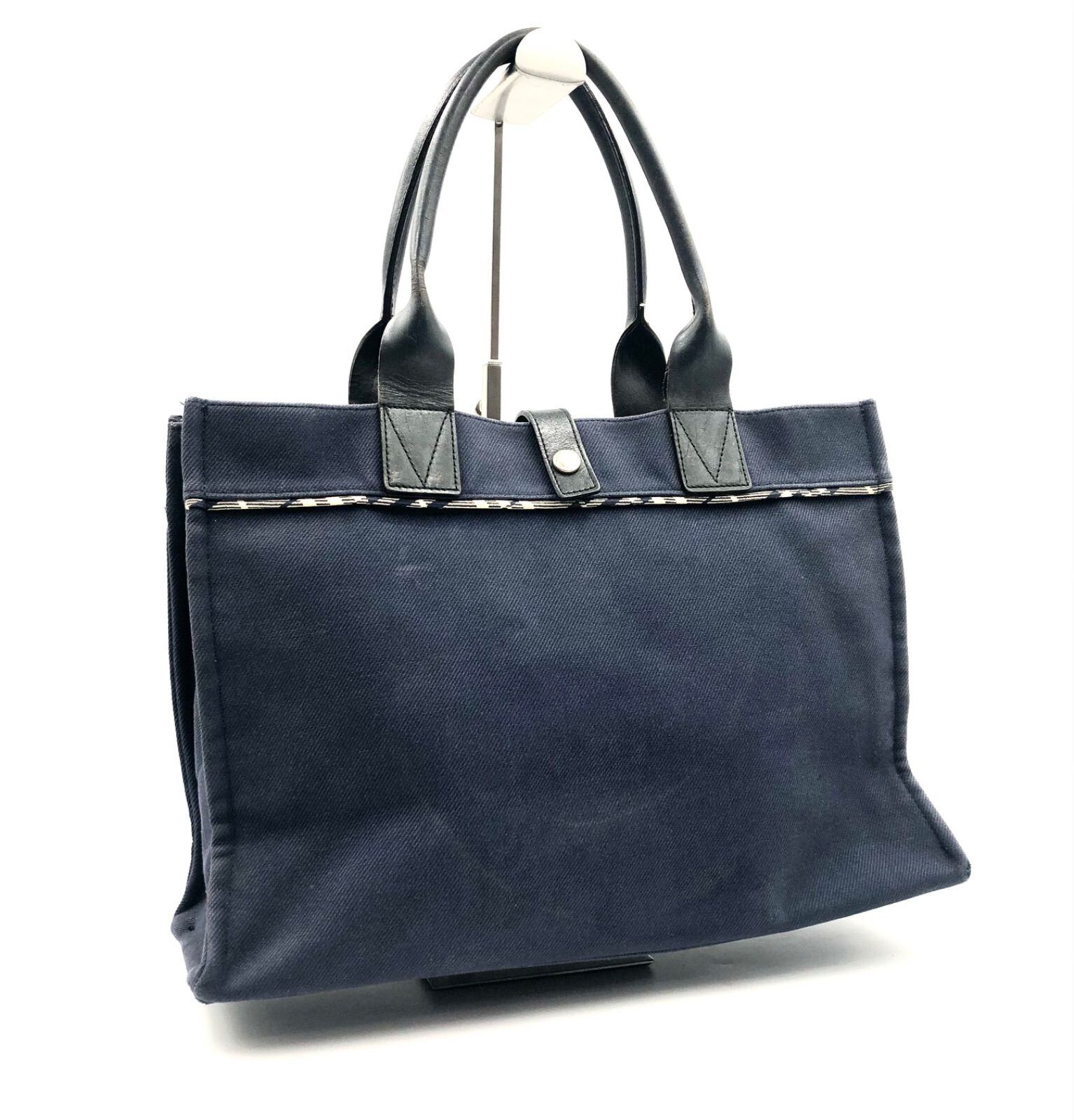BURBERRY BLUE LABEL バーバリーブルーレーベル トートバッグ コットンキャンバス×レザー ダークネイビー×ノバチェック 日本製 三陽商会