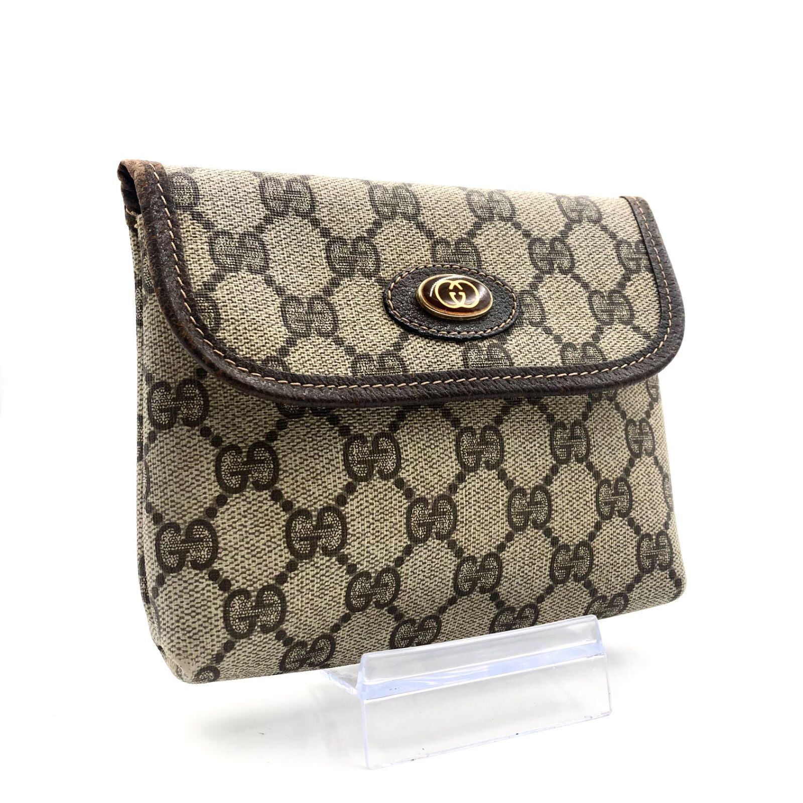 ■希少■GUCCI グッチ Accessory Collection アクセサリーコレクション GGスプリーム ポーチ インターロッキングG コーティングキャンバス ベージュ×ブラウン ゴールド金具 イタリア製
