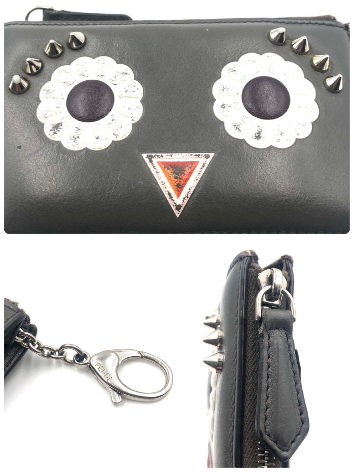 ■希少■FENDI フェンディ モンスター コインケース 小銭入れ キーホルダー イタリア製 刻印あり ブラック シルバー金具 スタッズ レザー 本革