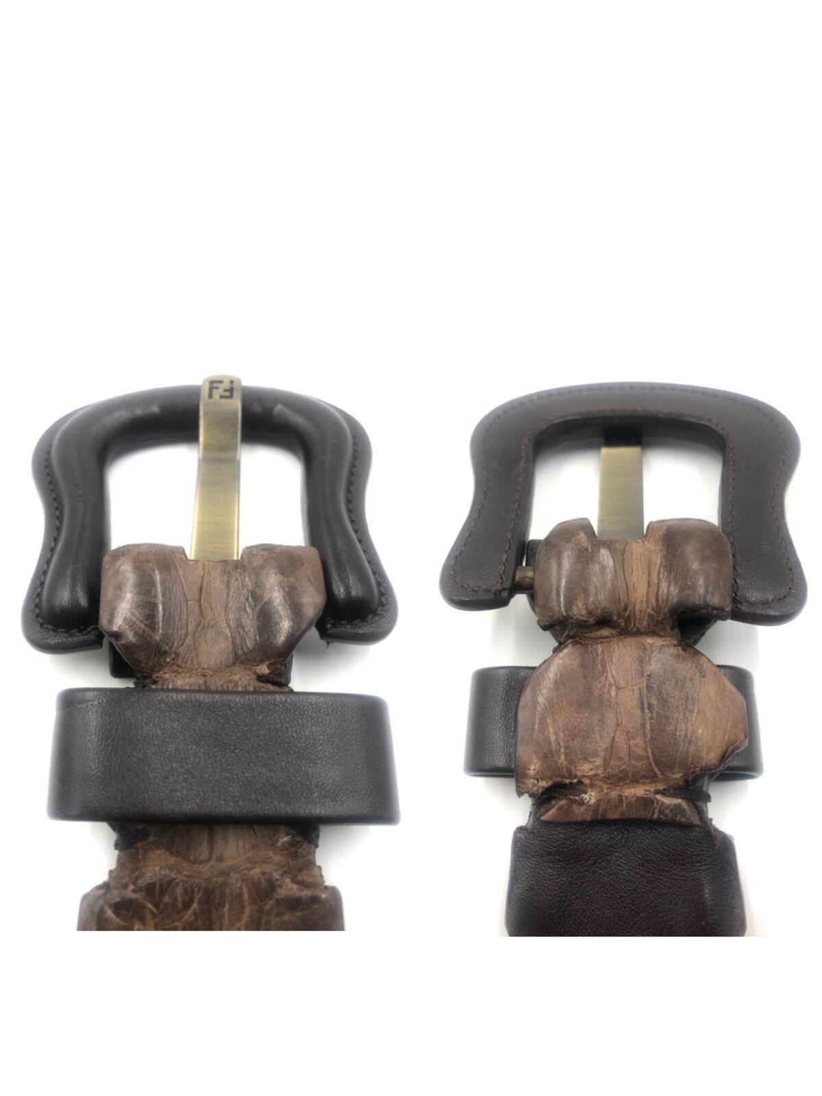 FENDI フェンディ ワニ革 クロコ レザーベルト ブラウン イタリア製 FFロゴ レディース ウエスト61.5~71.5cm