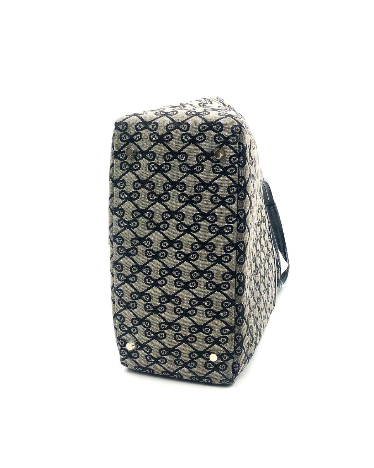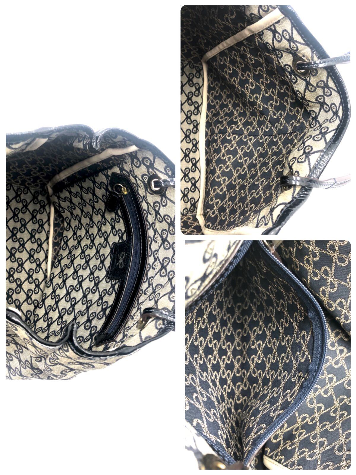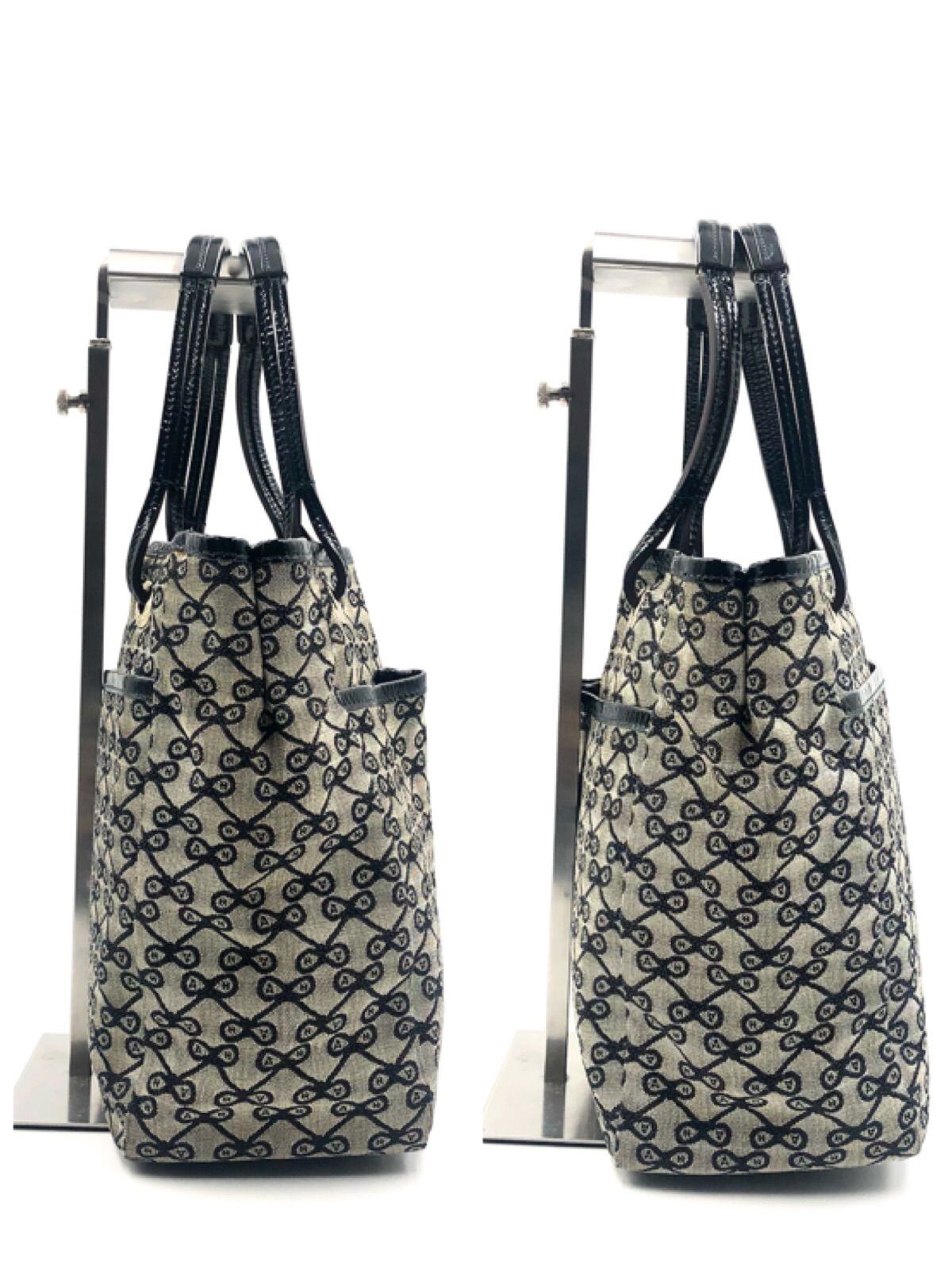 ANYA HINDMARCH アニヤハインドマーチ ロゴ総柄 トートバッグ キャンバス グレー×ブラック 底鋲