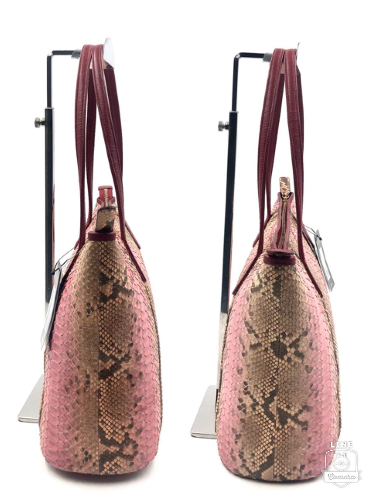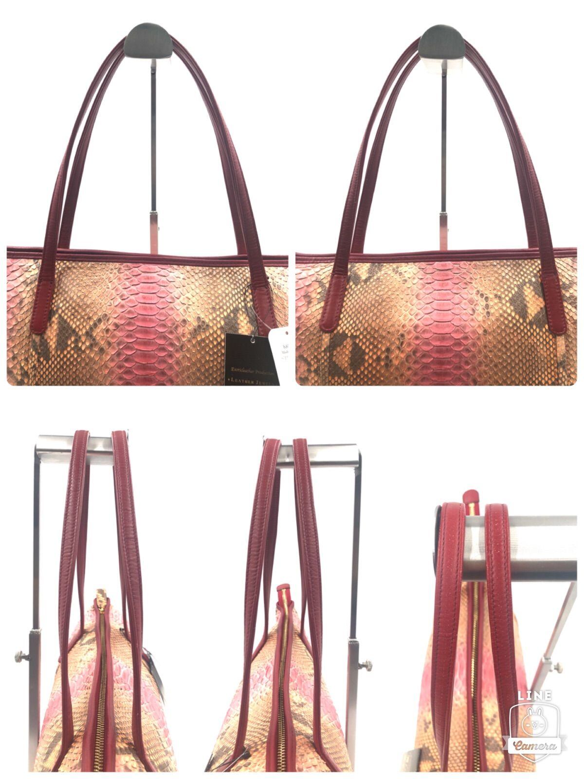 ■超希少■新品未使用タグ付き■定価22万円■JRA認証■LEATHER JEWELS レザージュエルズ パイソンレザー トートバッグ Crystal Reptiles クリスタルレプティルズ 匠プロジェクト 日本製 ヘビ革 本革 ブラウン×ピンク 刻印