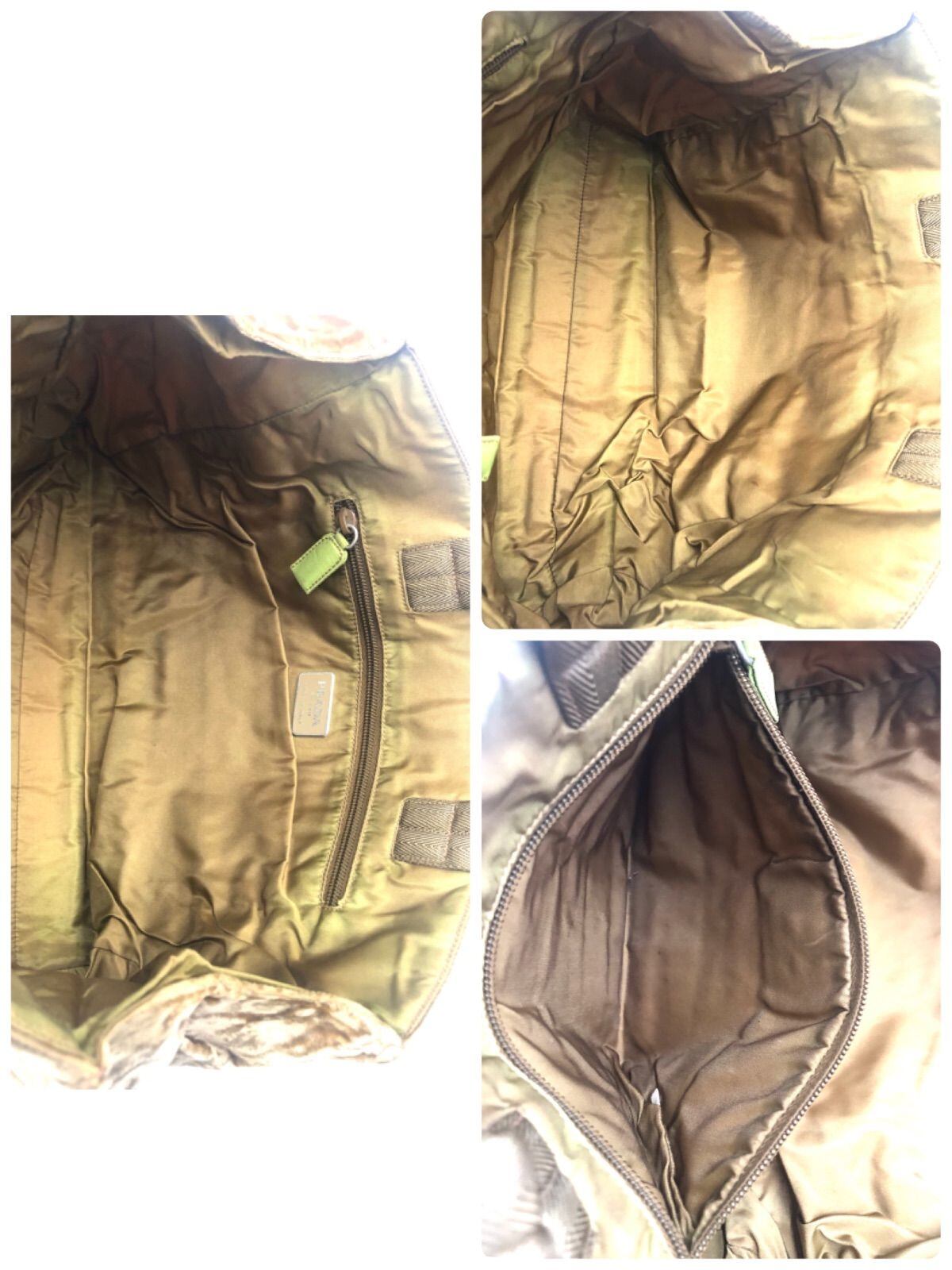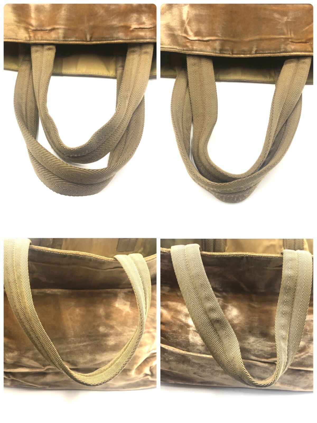 PRADA プラダ ベロア素材 トートバッグ 三角プレート イタリア製 布タグあり 底鋲 ベージュ系
