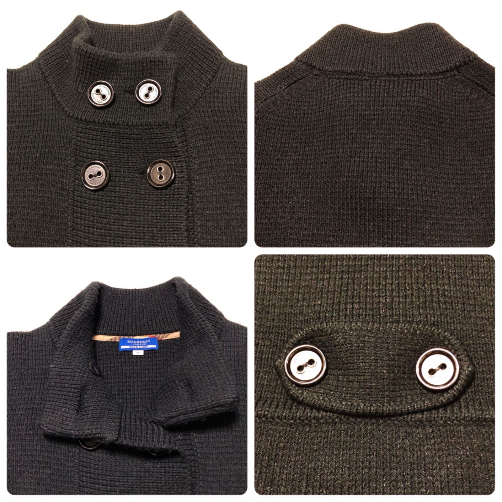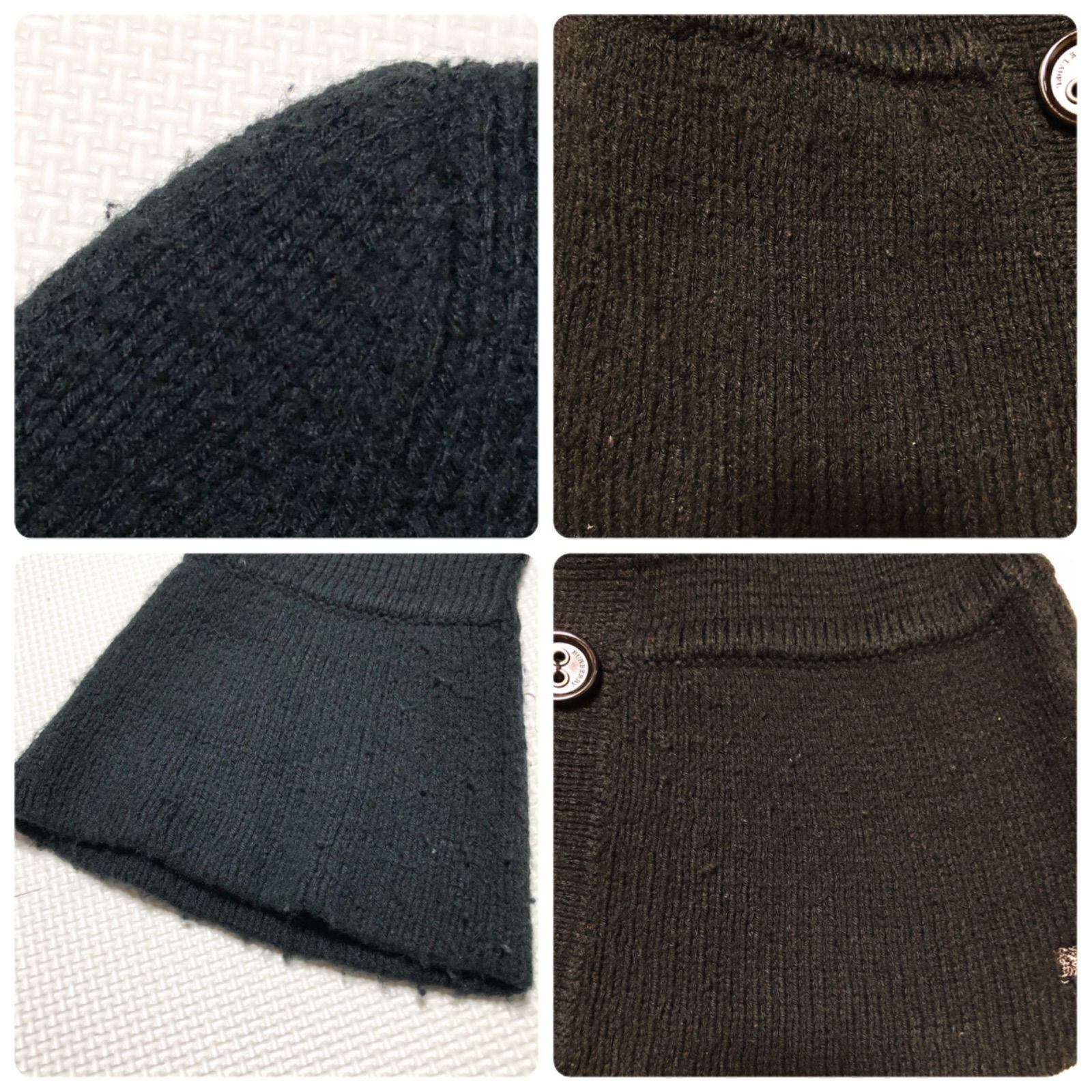 BURBERRY BLUE LABEL バーバリーブルーレーベル ショートコート ニットカーディガン スタンドカラー フレアスリーブ 裾ワンポイント刺繍ロゴ ダブルブレスト size 38(M) 三陽商会 ブラック アクリル×ウール×ナイロン レディース