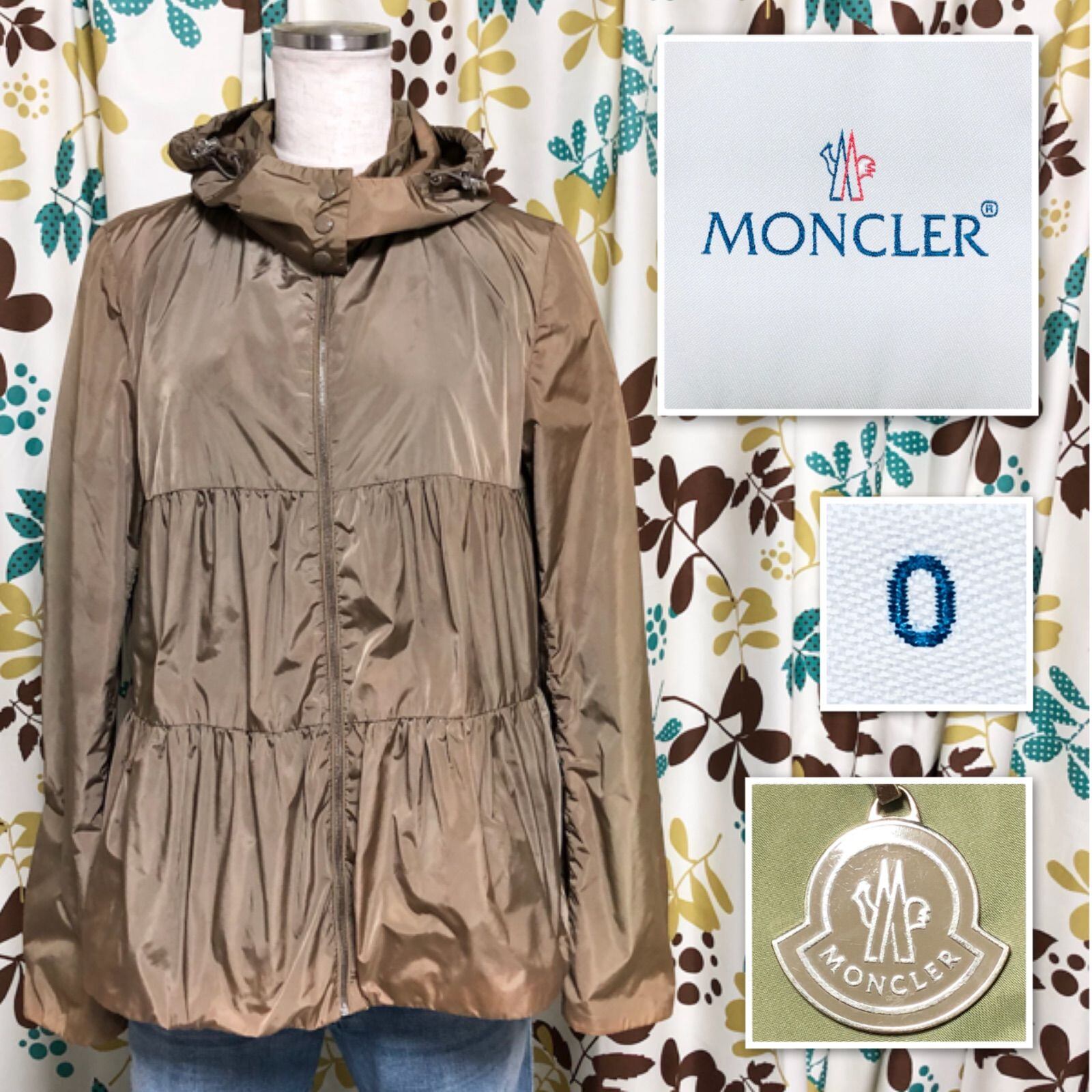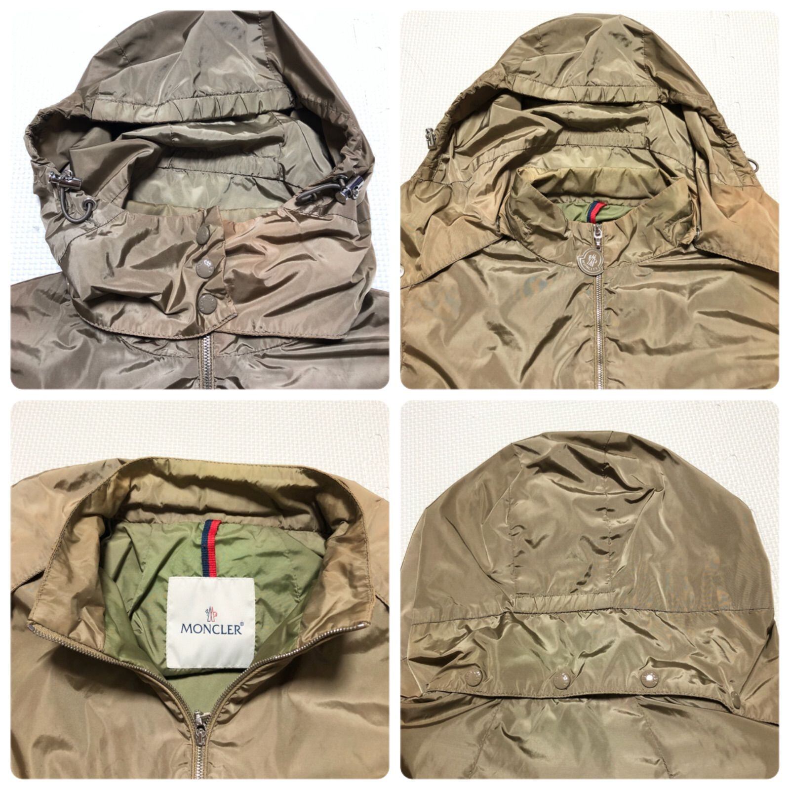 MONCLER モンクレール ナイロンジャケット マウンテンパーカー size0(S) モルドバ製 タマムシカーキ×裏地グリーン ナイロン100%(ポリウレタンコーティング) フルジップ 裾ドローコード フードボタン着脱 タグあり レディース