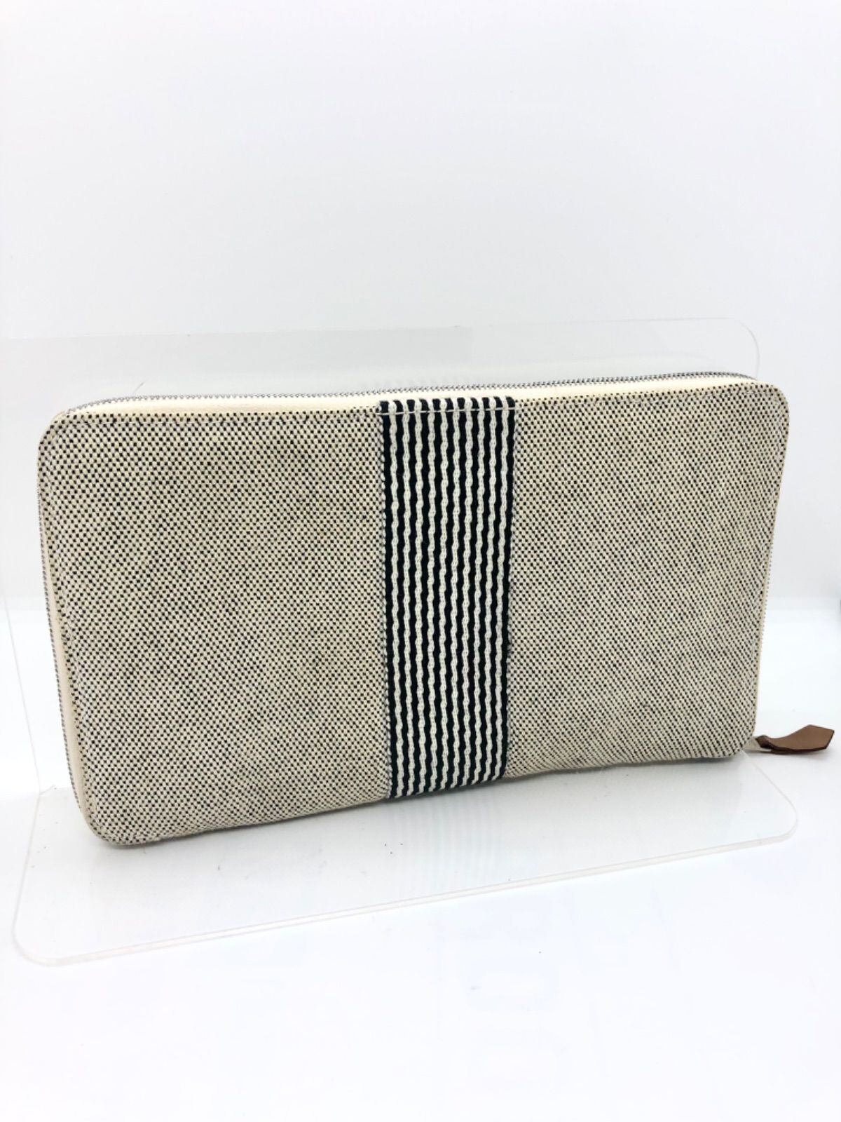 【希少】HERMES エルメス エールラインパース ホワイト ラウンドファスナー 長財布 キャンバス