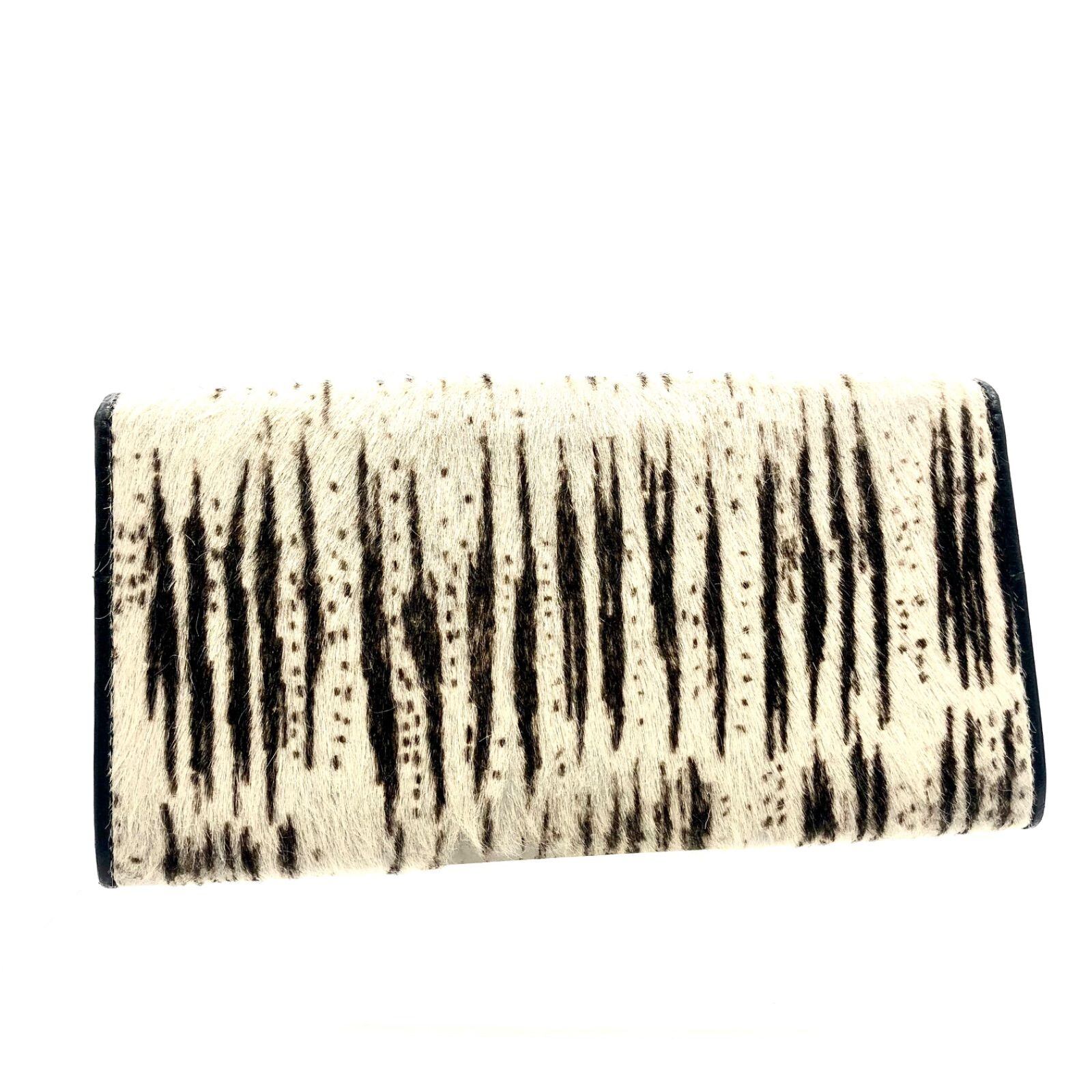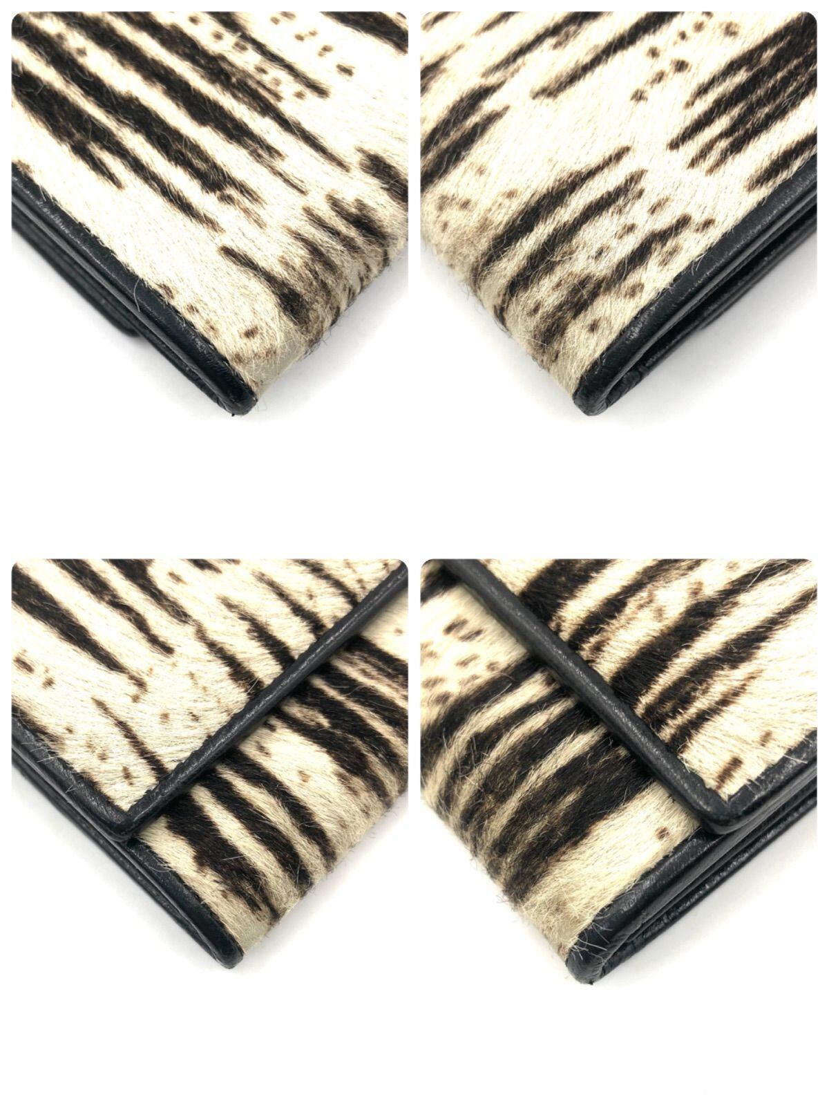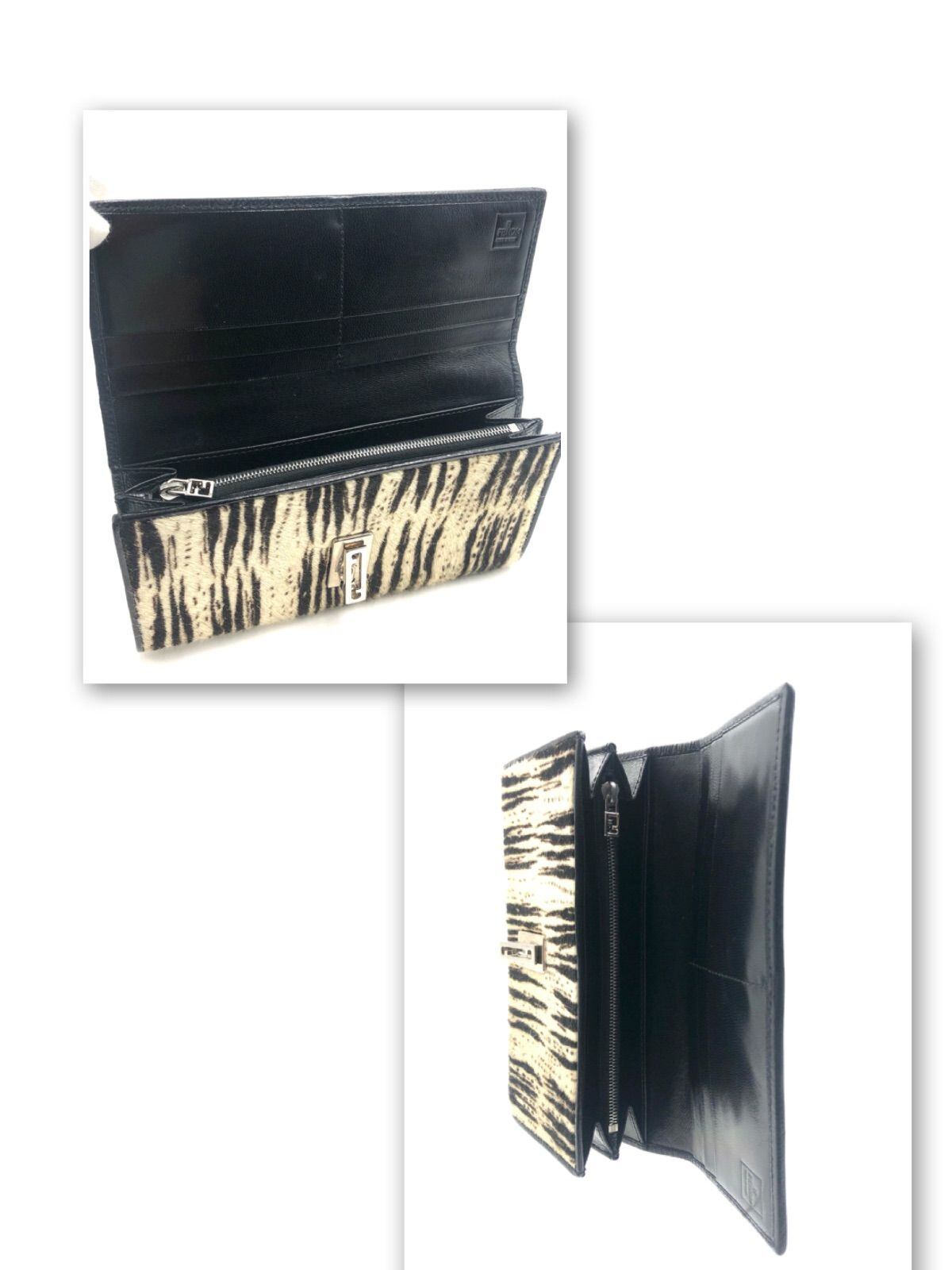 ■超希少■FENDI フェンディ FF金具 ハラコレザー 長財布 アニマル ホワイトタイガー柄 ホワイトベージュ×ダークブラウン シルバー金具 イタリア製 刻印あり 紙カード、箱付き レディース
