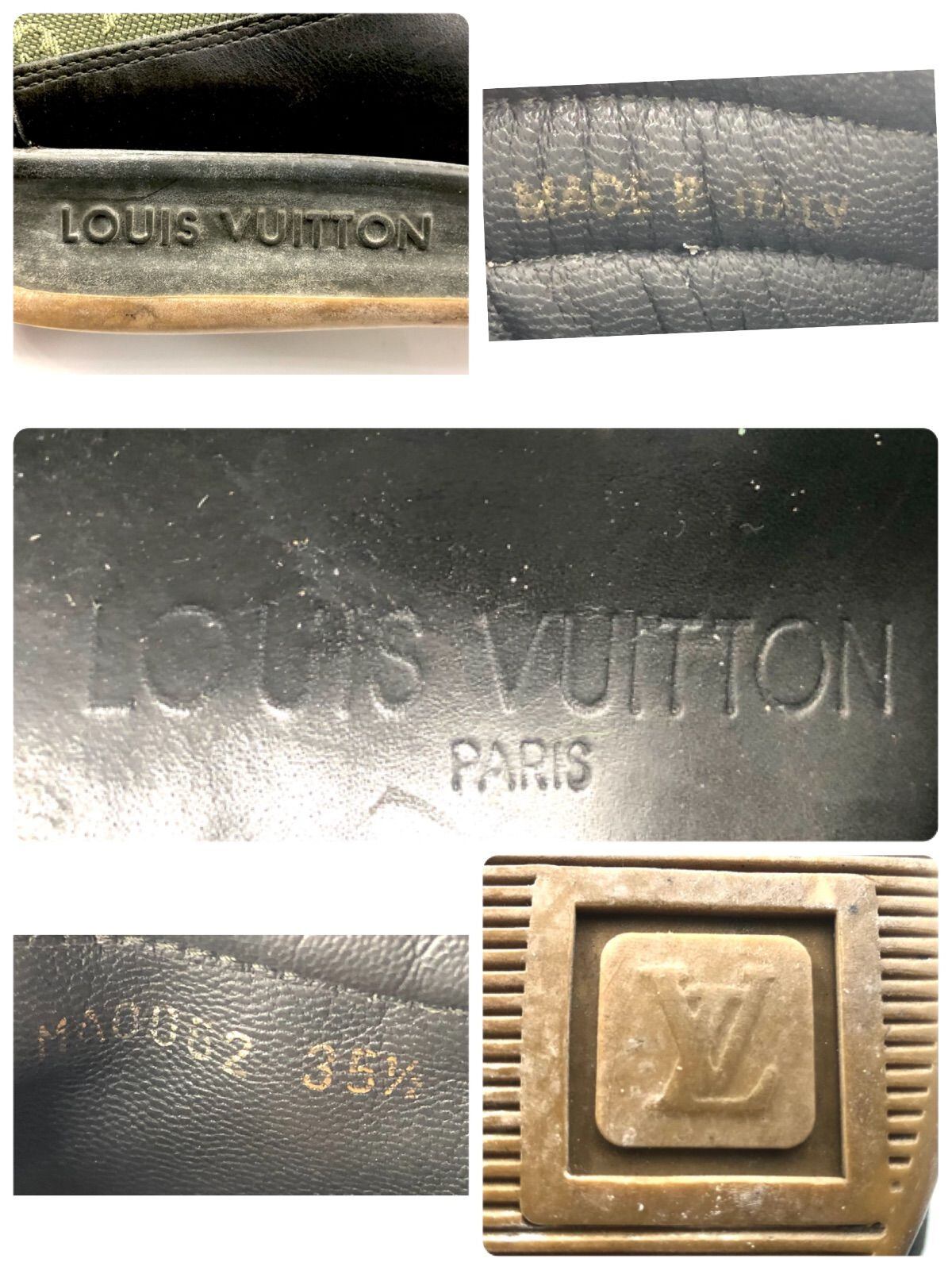 LOUIS VUITTON ルイヴィトン モノグラムミニ スニーカー レザー×キャンバス ブラック×グリーン イタリア製 サイズ35.5(22.5~23cm) レディース 刻印あり