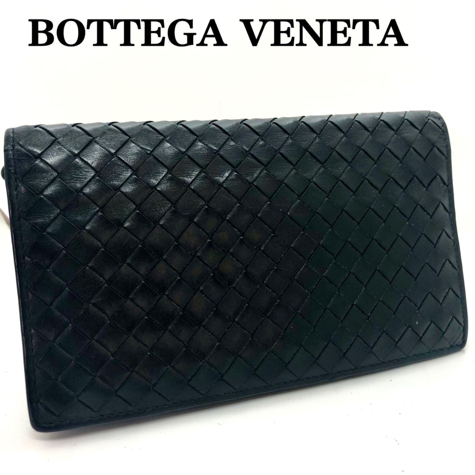 ★フォローで割引クーポン発行中★BOTTEGA VENETA ボッテガヴェネタ カーフスキン イントレチャート 二つ折り長財布 ブラック タグあり