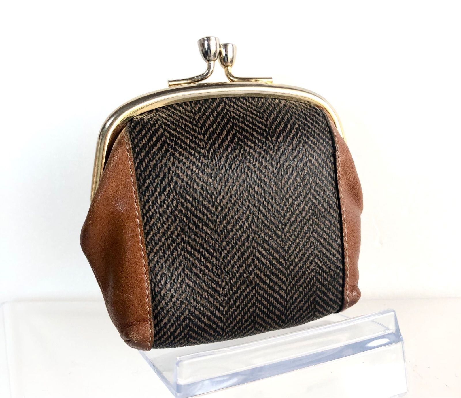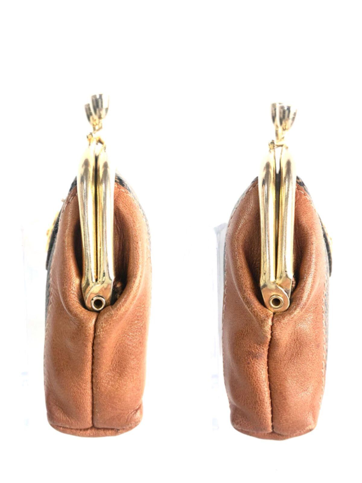 ■美品■Christian Dior クリスチャンディオール ロゴプレート がま口コインケース 小銭入れ PVC×レザー ブラウン系 内側CDロゴ総柄 ゴールド金具 スペイン製 レディース