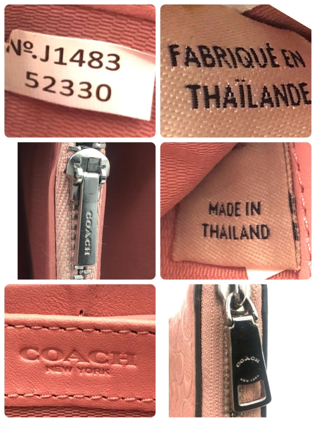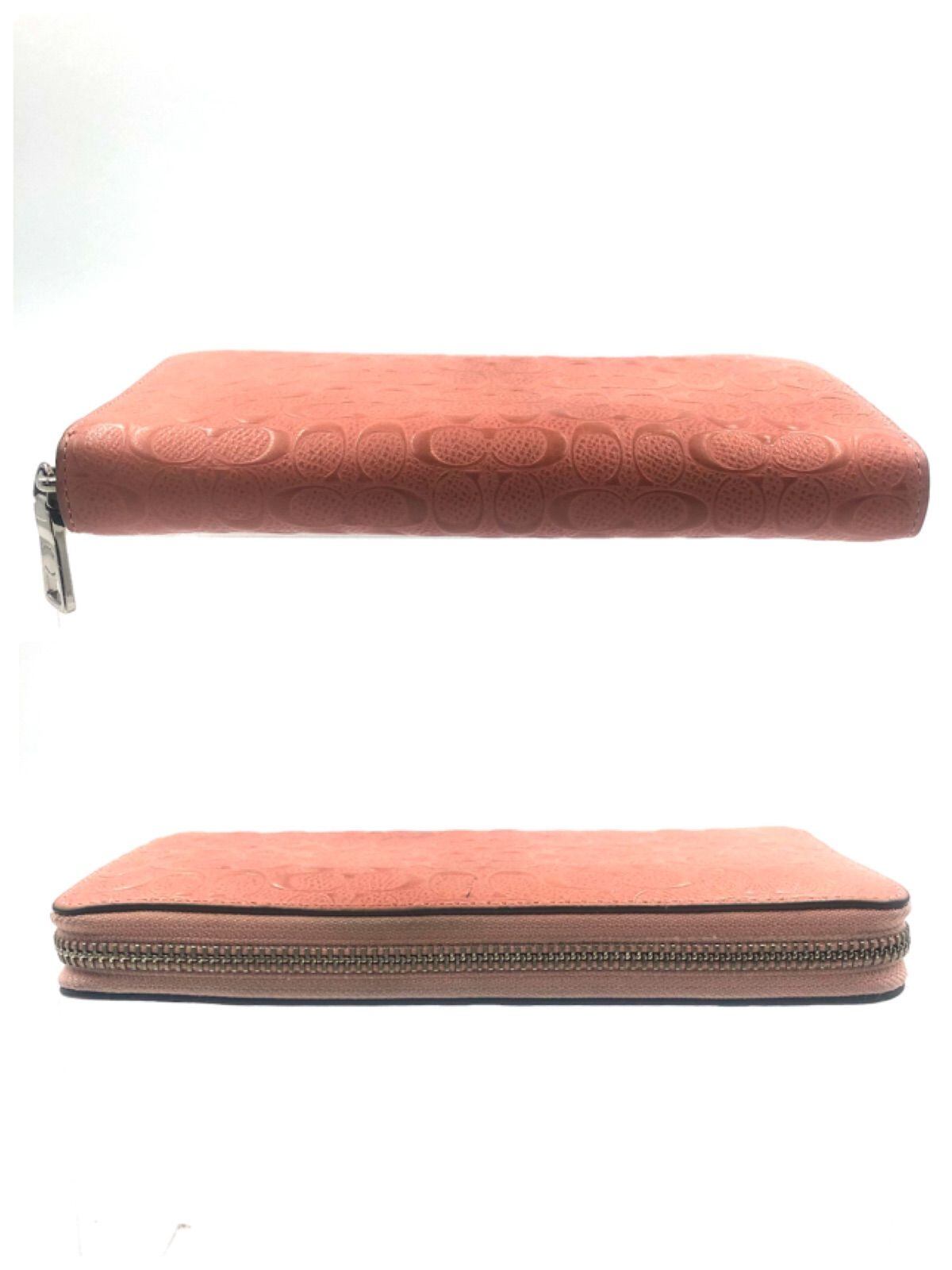 ■美品■COACH コーチ ミニシグネチャーPVC×レザー ラウンドファスナー 長財布 ピンクベージュ シルバー金具 タグあり