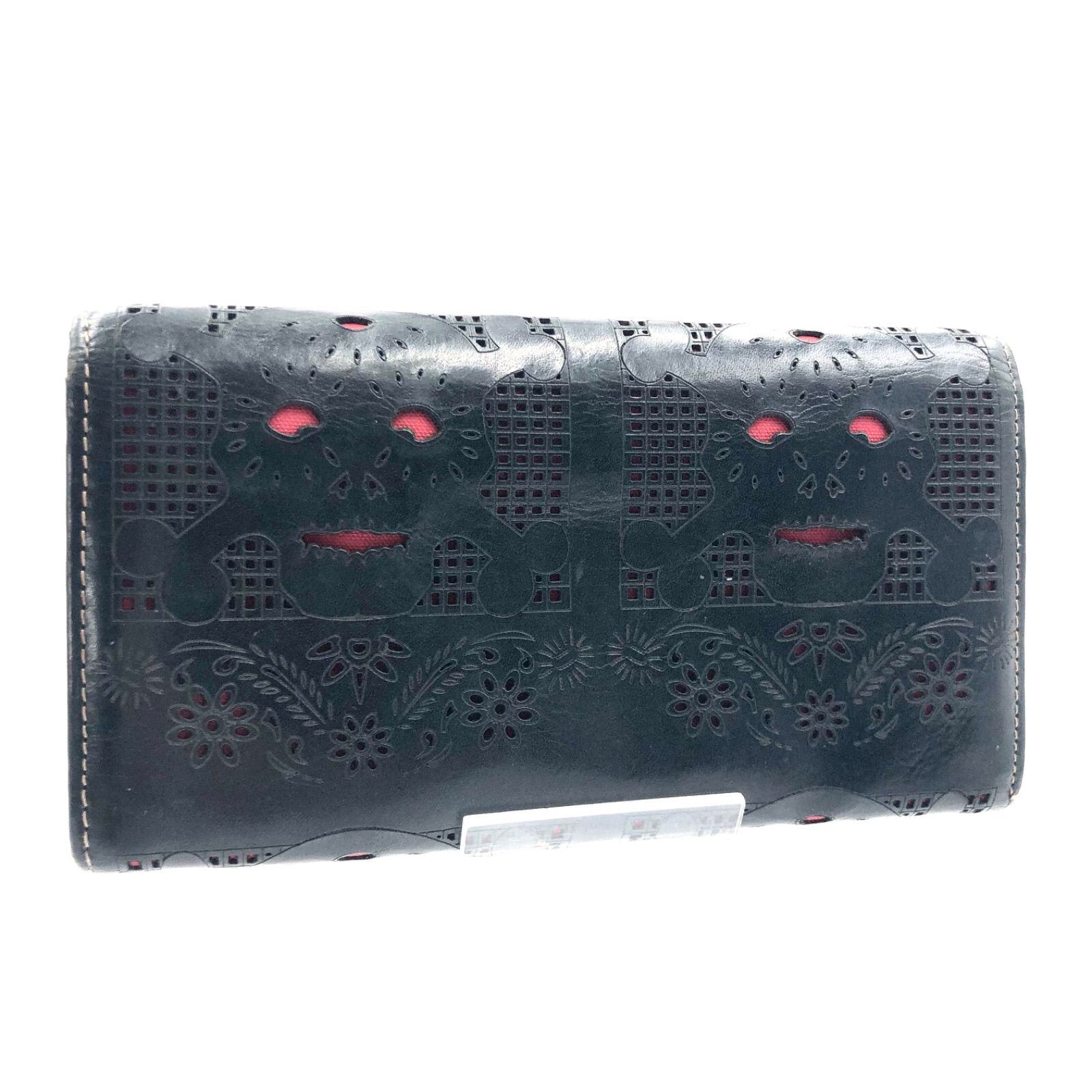 ■良品■Vivienne Westwood ヴィヴィアンウエストウッド スカルデザインパンチング ゴールドオーブ 長財布 ブラック×レッド ゴールド金具
