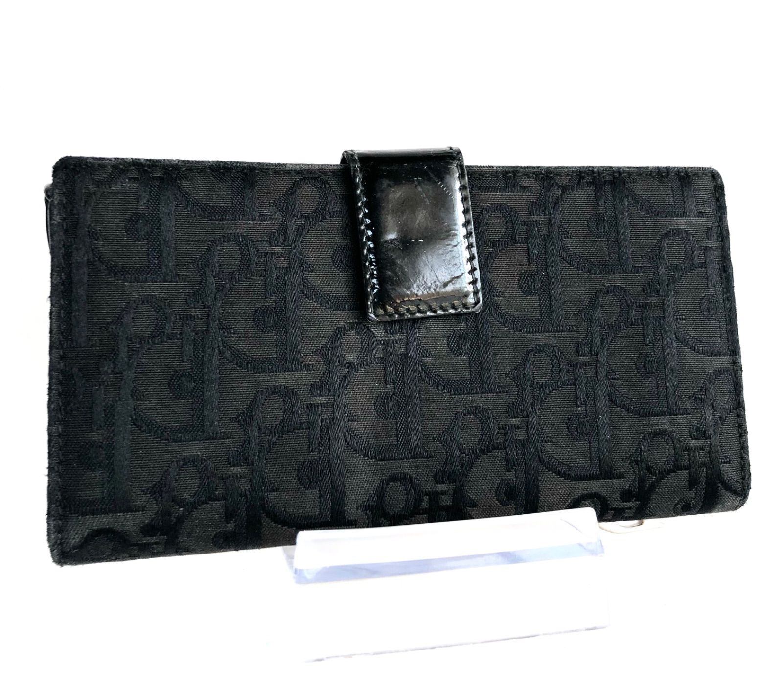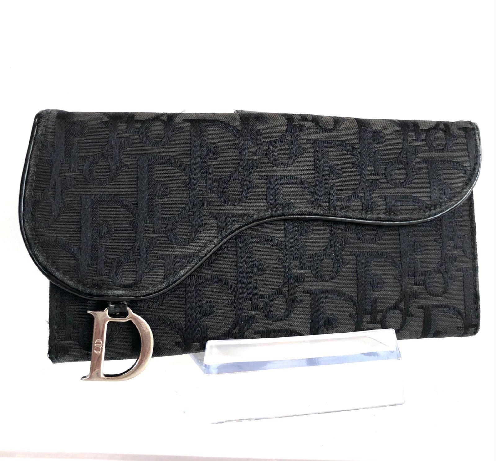 ■良品■希少■鑑定済み■Christian Dior クリスチャンディオール サドル トロッター 長財布 キャンバス×レザー D金具 ロゴ総柄 グレー×ブラック ゴールド金具 スペイン製 刻印あり