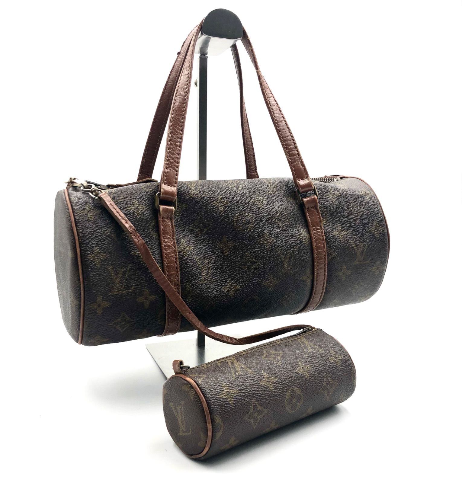 ■状態良好■鑑定済み■LOUIS VUITTON ルイヴィトン モノグラム 旧パピヨン30 子供ポーチ付き ミニボストンバッグ M51385 PVC×レザー(豚革) フランス製 ブラウン ECLAIR社製ファスナー