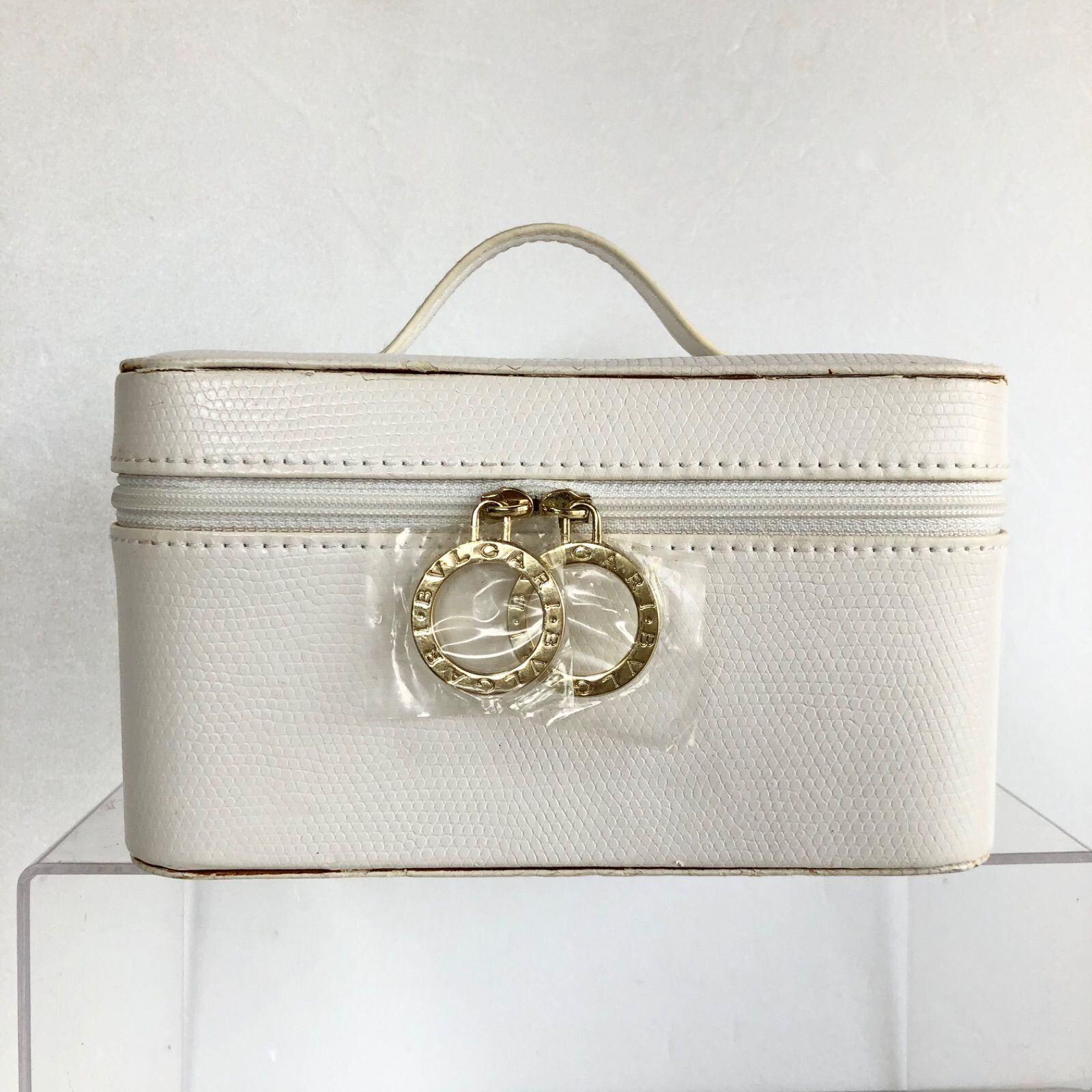 BVLGARI Perfums ブルガリ バニティバッグ ジュエリーボックス コスメポーチ リザード型押し ホワイト ゴールド金具 ブルガリ・ブルガリ タグあり