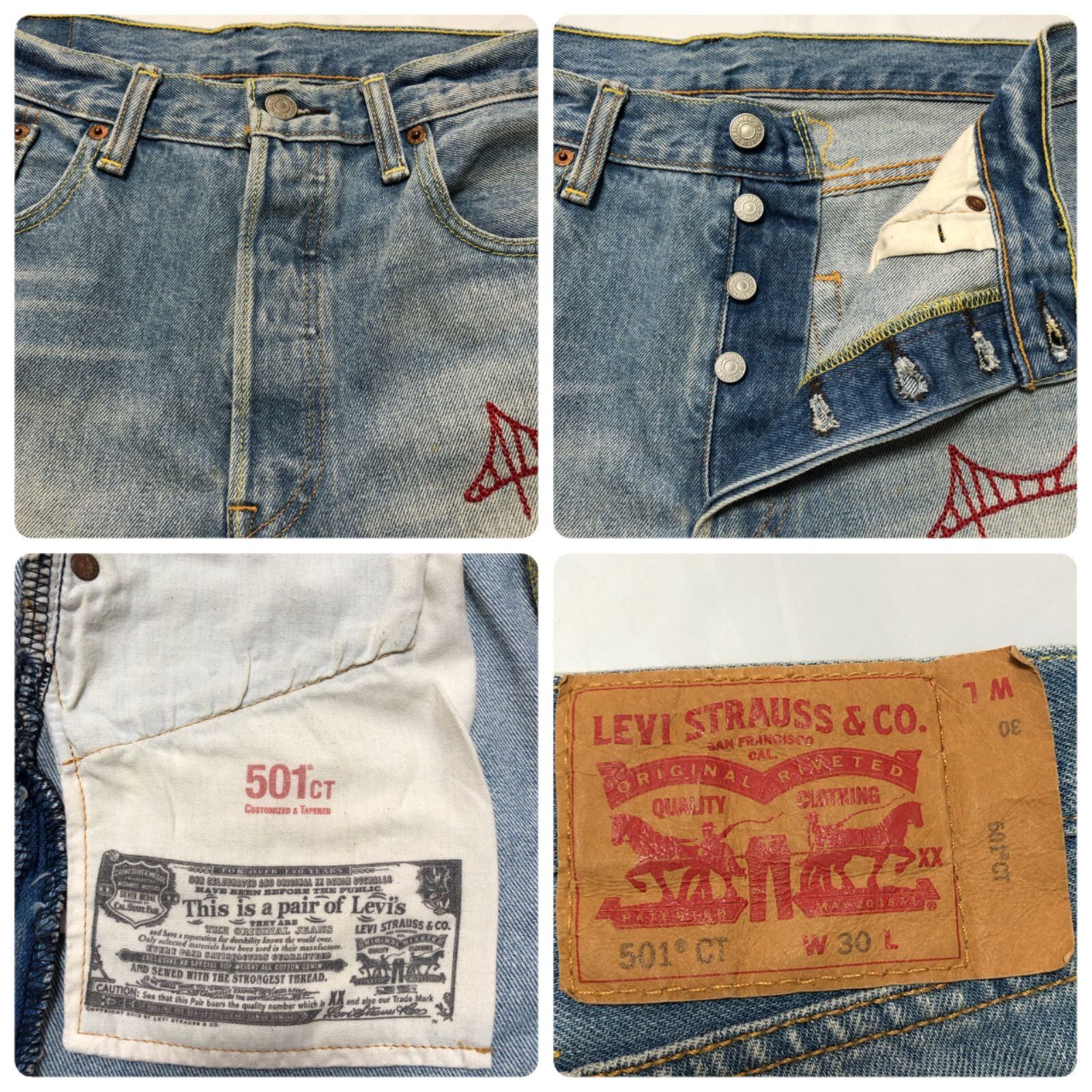 ■美品■Levi's リーバイス 501CT デニム ハーフパンツ ダメージ加工 W30 刺繍 ボタンフライ コットン100% インディゴブルー