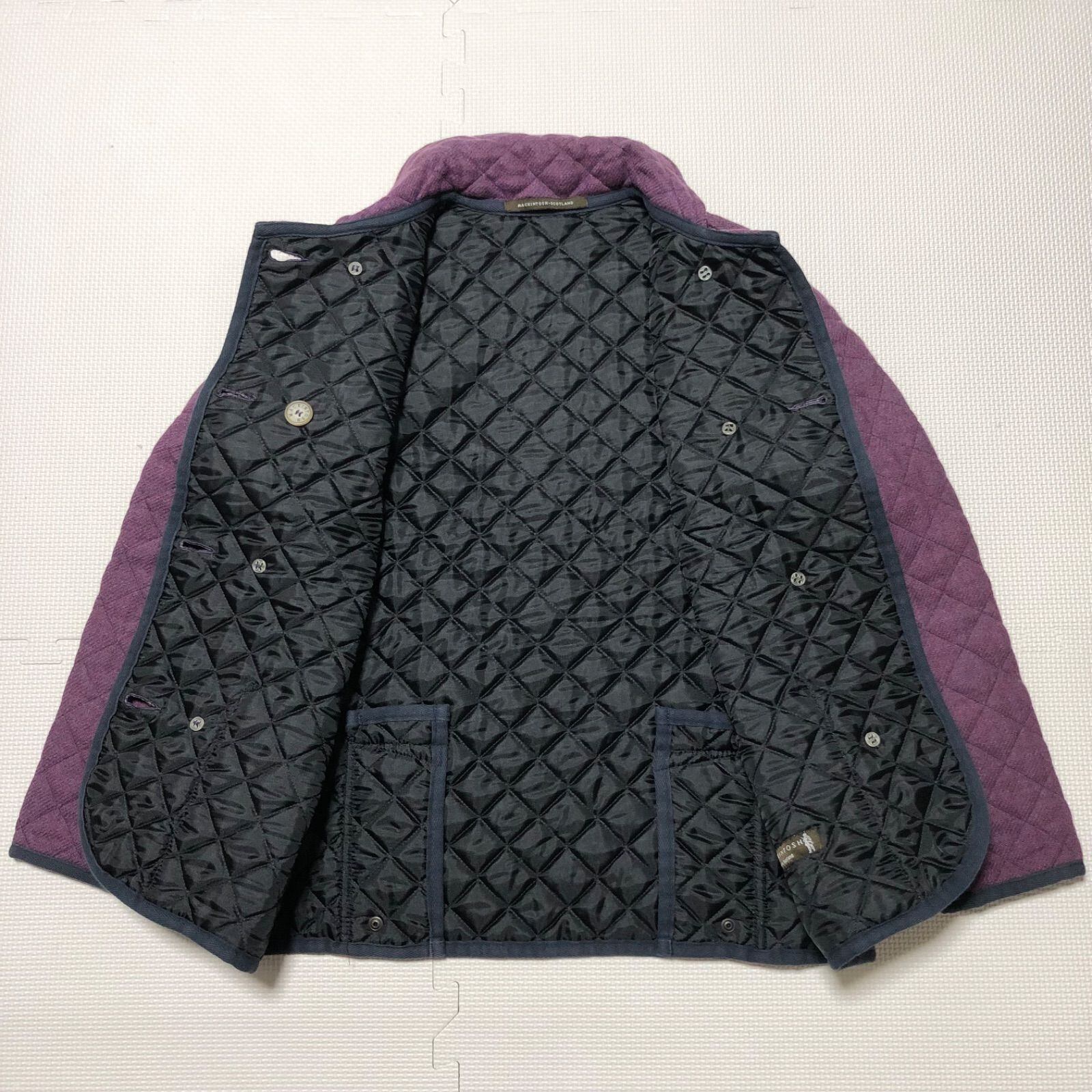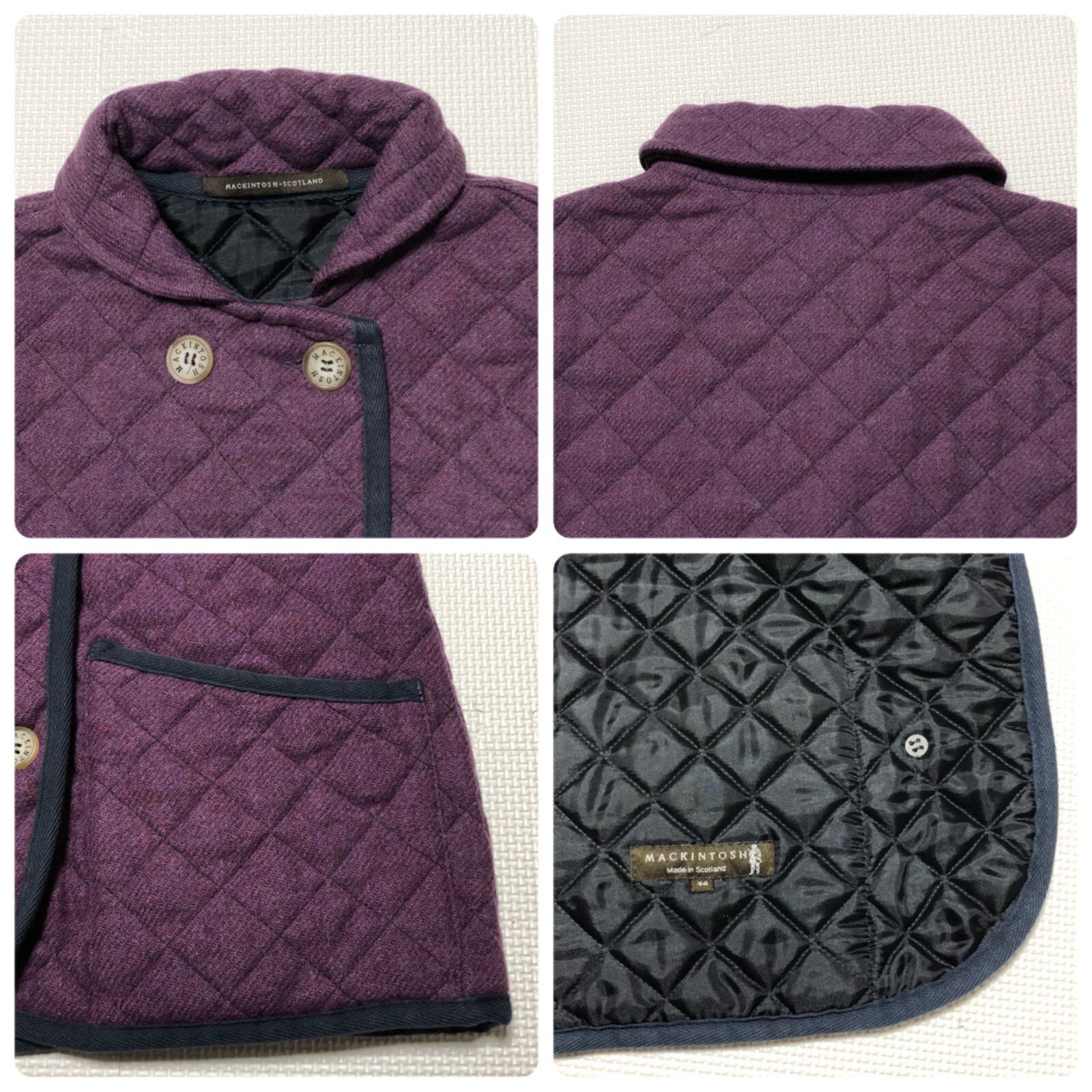 ■極美品■希少ダブル■MACKINTOSH マッキントッシュ キルティングジャケット ウール100% size34(S) スコットランド製 ロゴボタン パープル系×裏地ブラック系 ダブルブレスト サイドベンツ ヘチマ襟 レディース