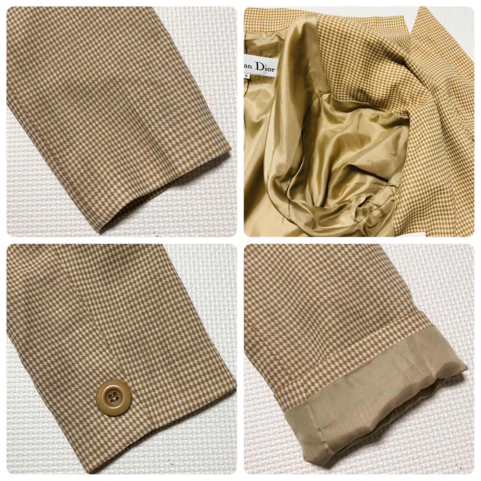 Christian Dior クリスチャンディオール スカートスーツ上下セットアップ 千鳥格子 チェック総柄 ウール100% 裏地あり sizeM カネボウ製 シングル1つボタン ひざ丈タイトスカート ベージュ レディース