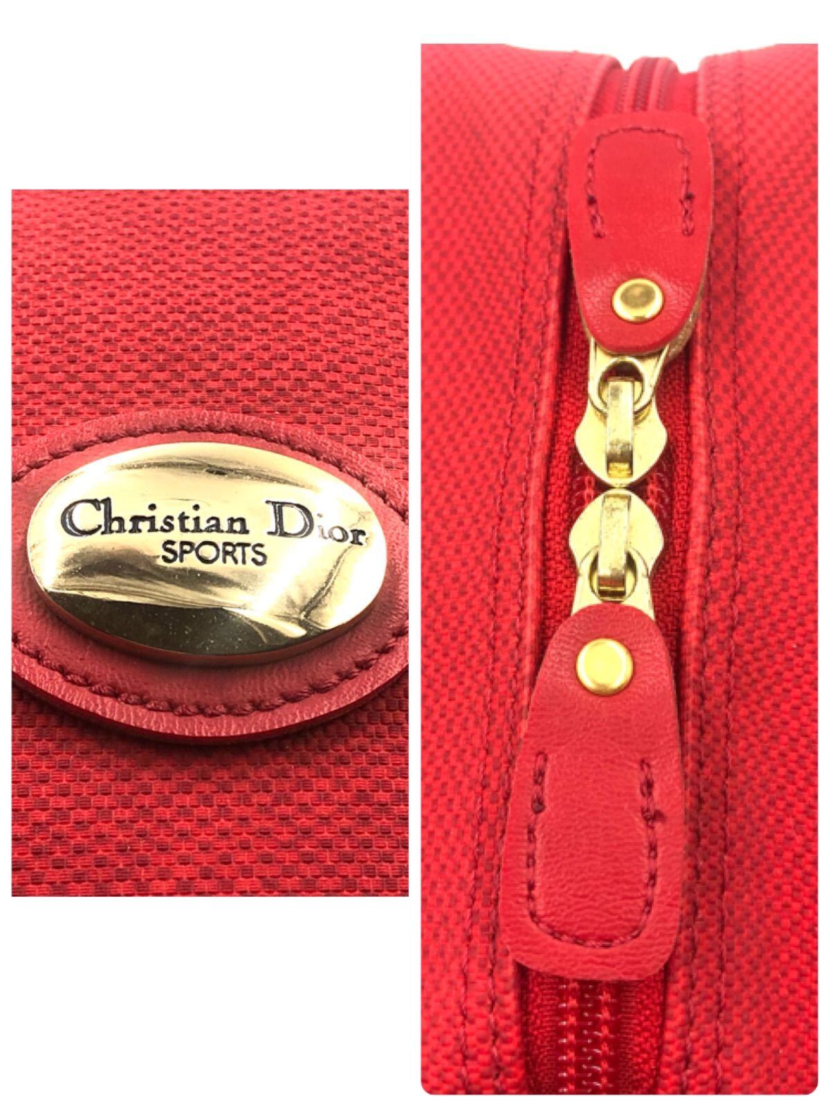 ■極上美品■1990~1996年限定生産ヴィンテージ品■Christian Dior SPORTS クリスチャンディオールスポーツ シューズバッグ トートバッグ ゴルフ スポーツ コーティングキャンバス×レザー レッド×ゴールド金具 ロゴプレート