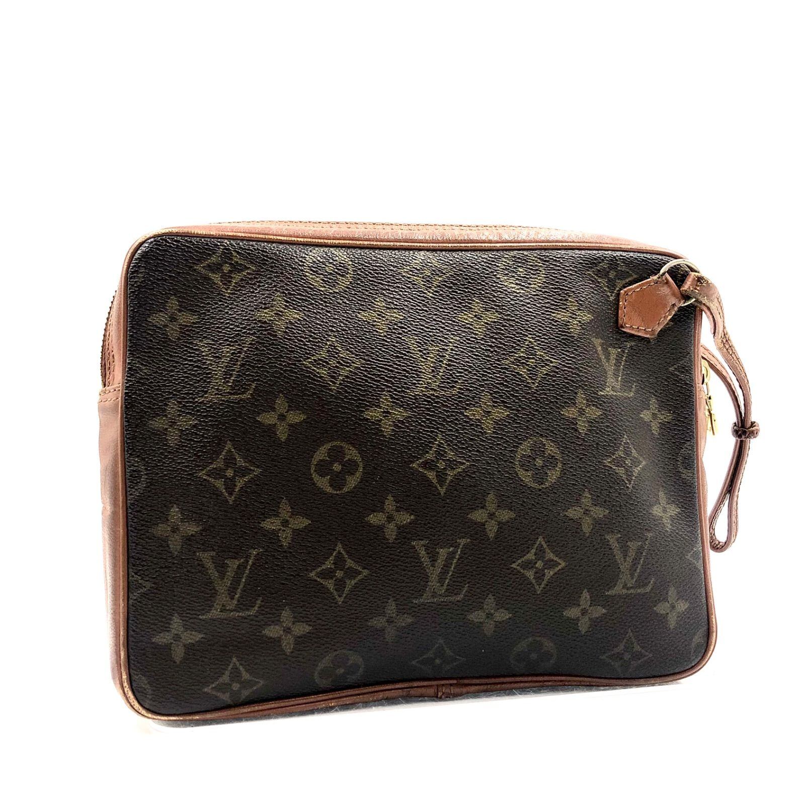 LOUIS VUITTON ルイヴィトン モノグラム ポシェットスポーツ セカンドバッグ ブラウン ゴールド金具 PVC×レザー(豚革) フランス製 ストラップ ヴィンテージ