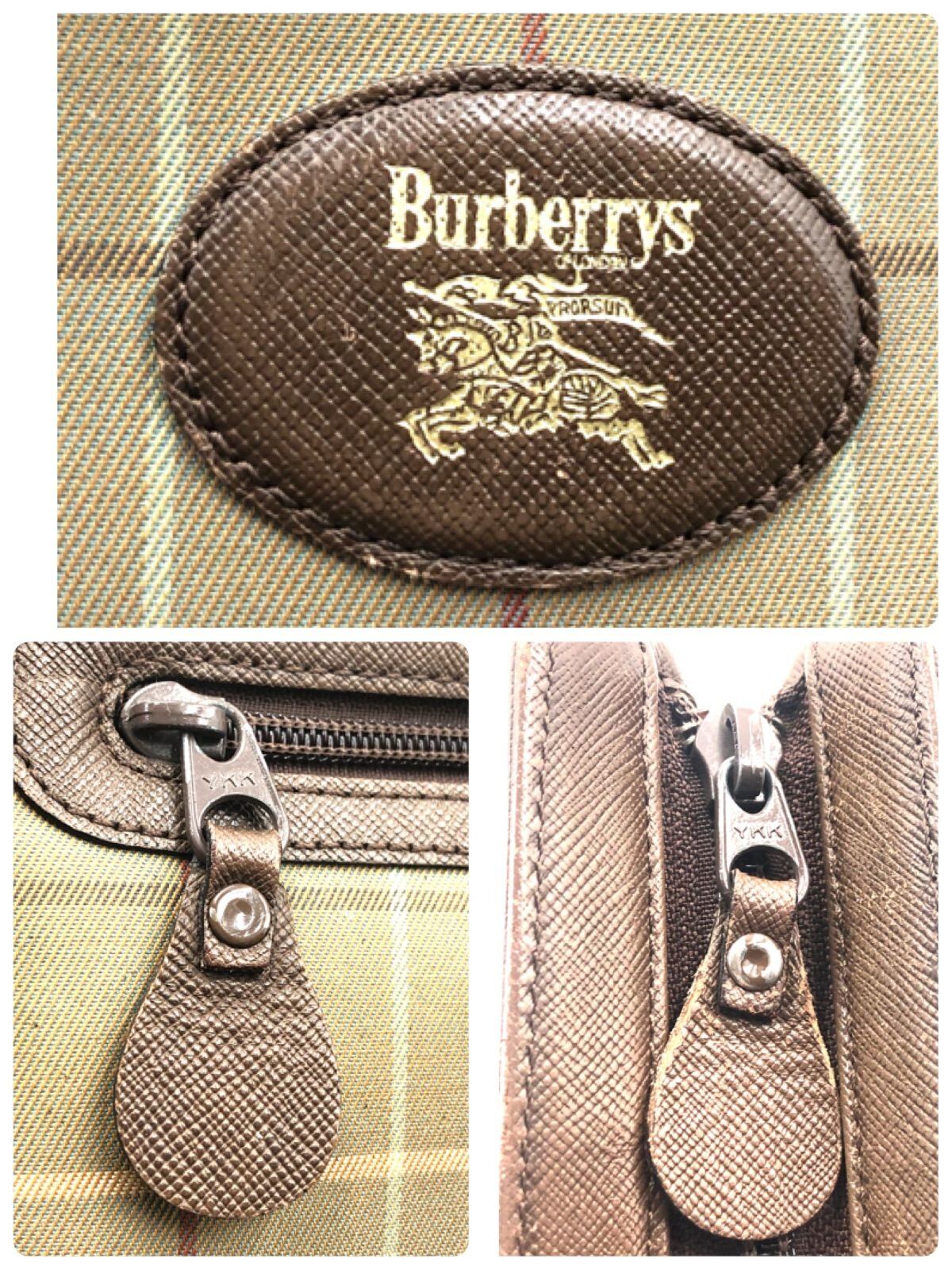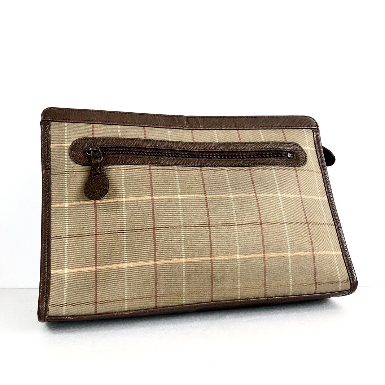 ■良品■Burberrys バーバリー タマムシチェック セカンドバッグ クラッチバッグ ロゴプレート キャンバス×レザー ベージュ×ブラウン