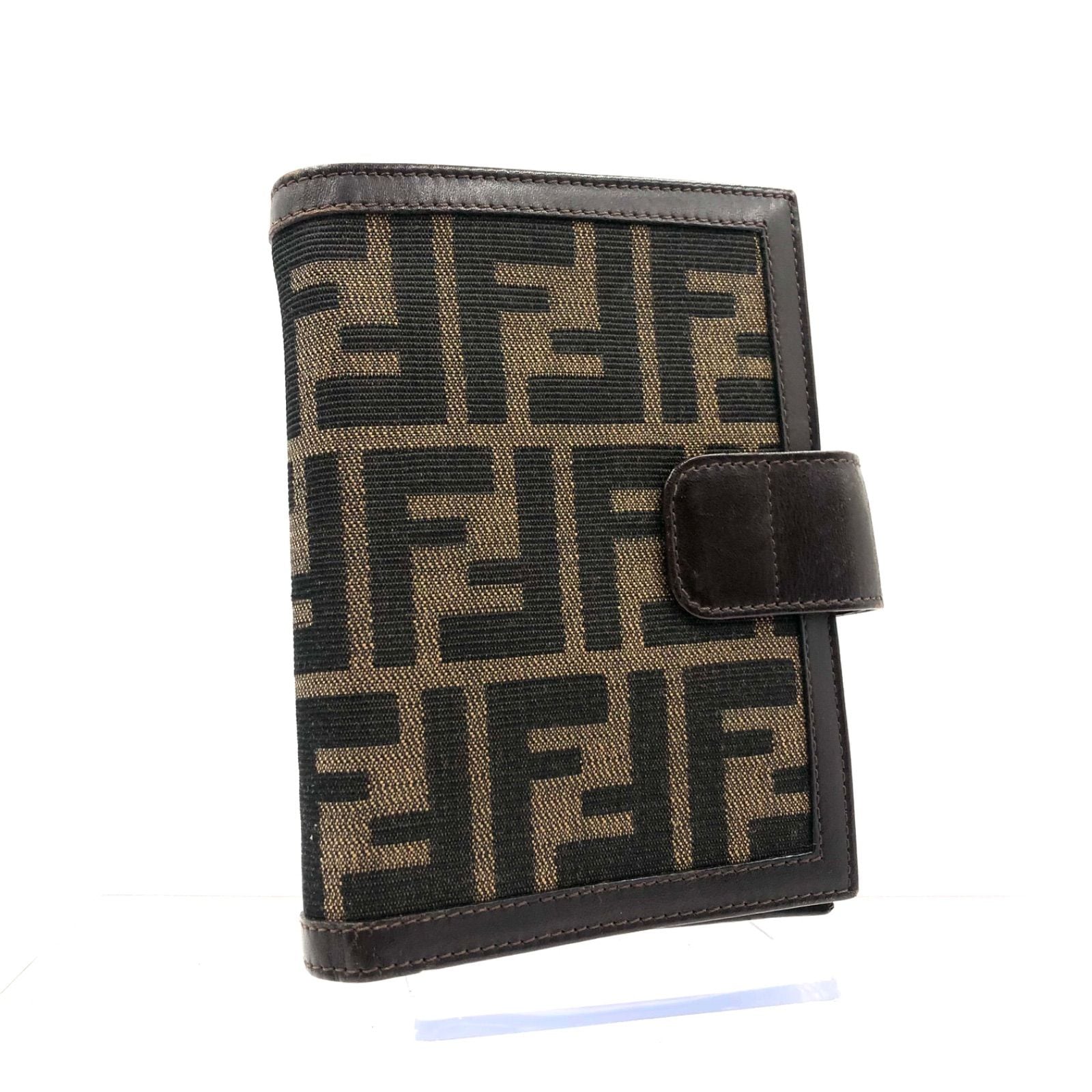 ■外観極美品■FENDI フェンディ ズッカ 手帳カバー アジェンダ キャンバス×レザー ブラウン系 イタリア製 刻印あり