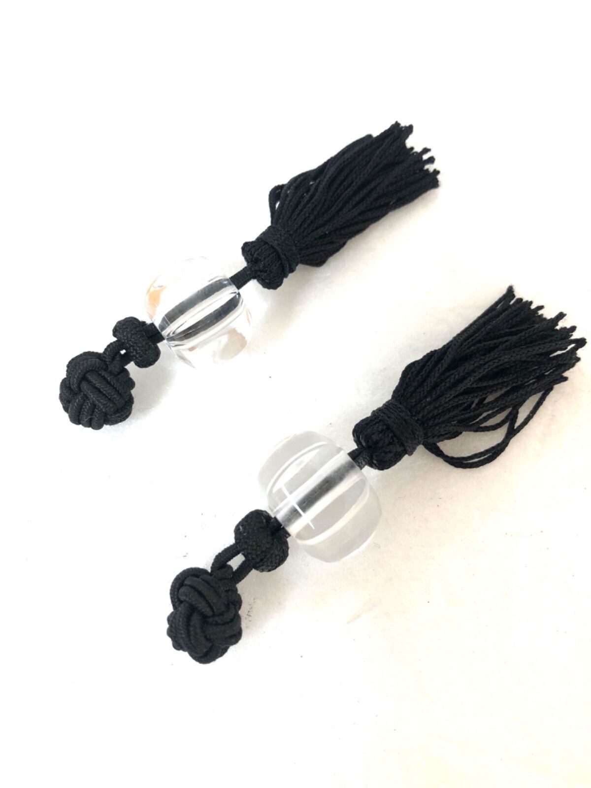 ■美品■超希少■Baccarat バカラ カフスボタン カフリンクス クリスタルタッセル 和風 数珠モチーフ ブラック フランス製 紙冊子、箱付き メンズアクセサリー