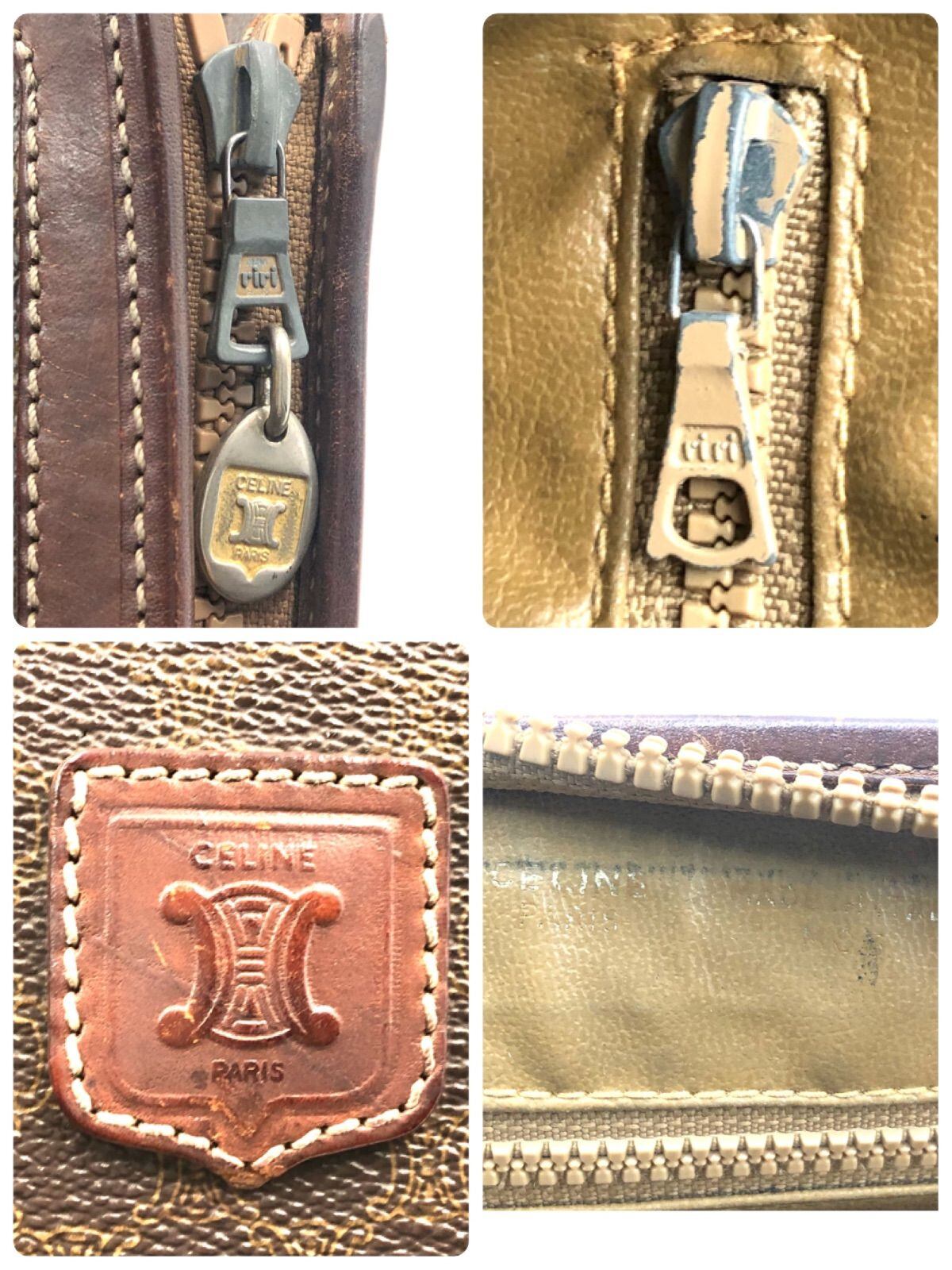 CELINE セリーヌ マカダム総柄 クラッチバッグ セカンドバッグ トリオンフロゴプレート ブラウン PVC×レザー イタリア製