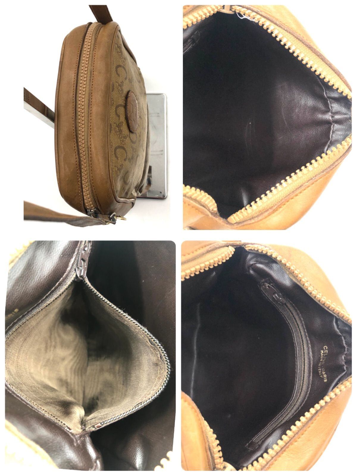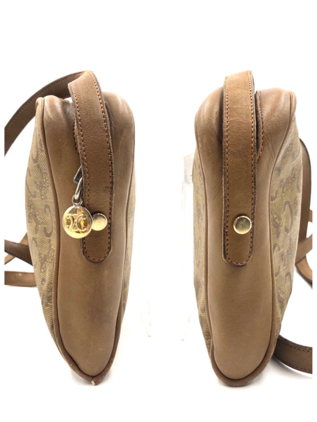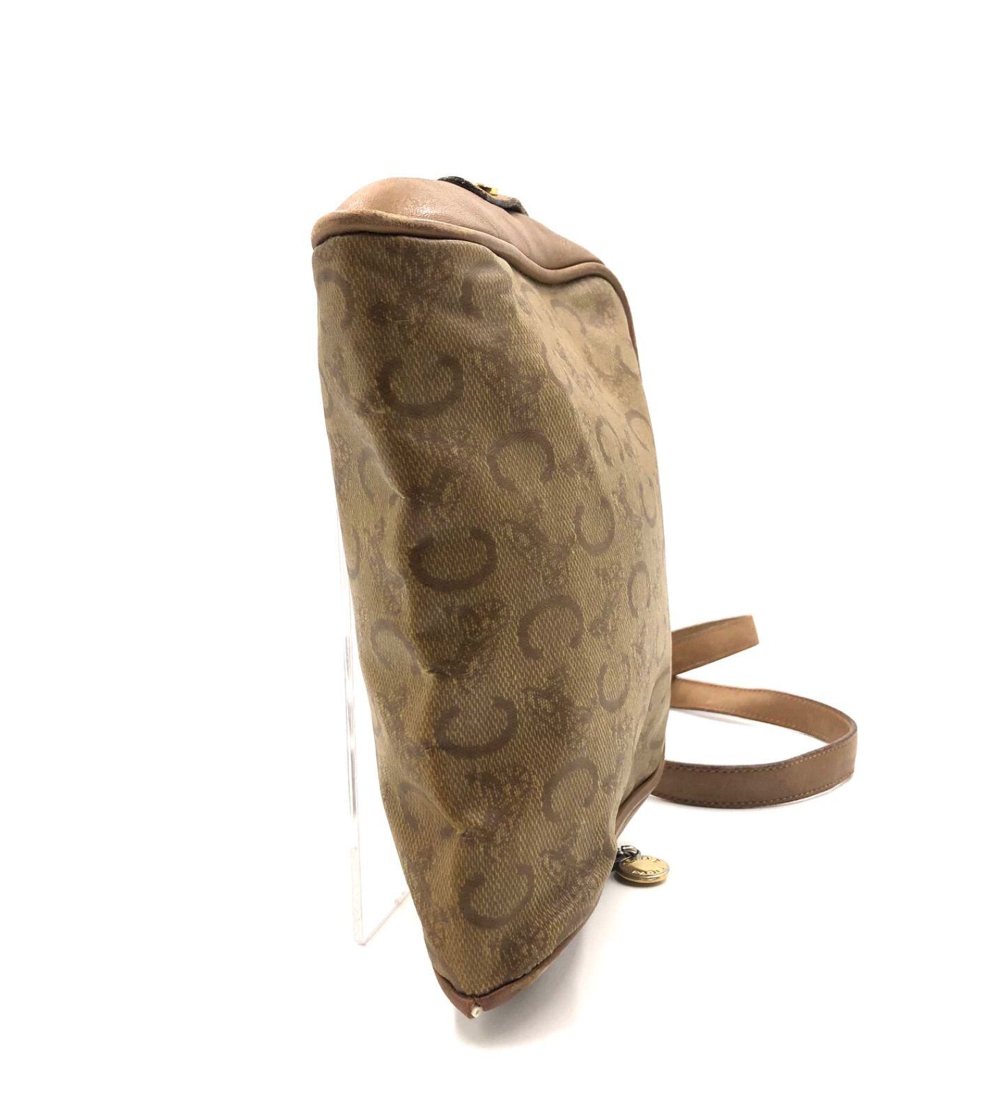 CELINE セリーヌ 馬車柄プレート サルキー Cマカダム ショルダーバッグ 斜めがけ クロスボディ PVC×レザー ブラウン系 ゴールド金具 イタリア製 レディース