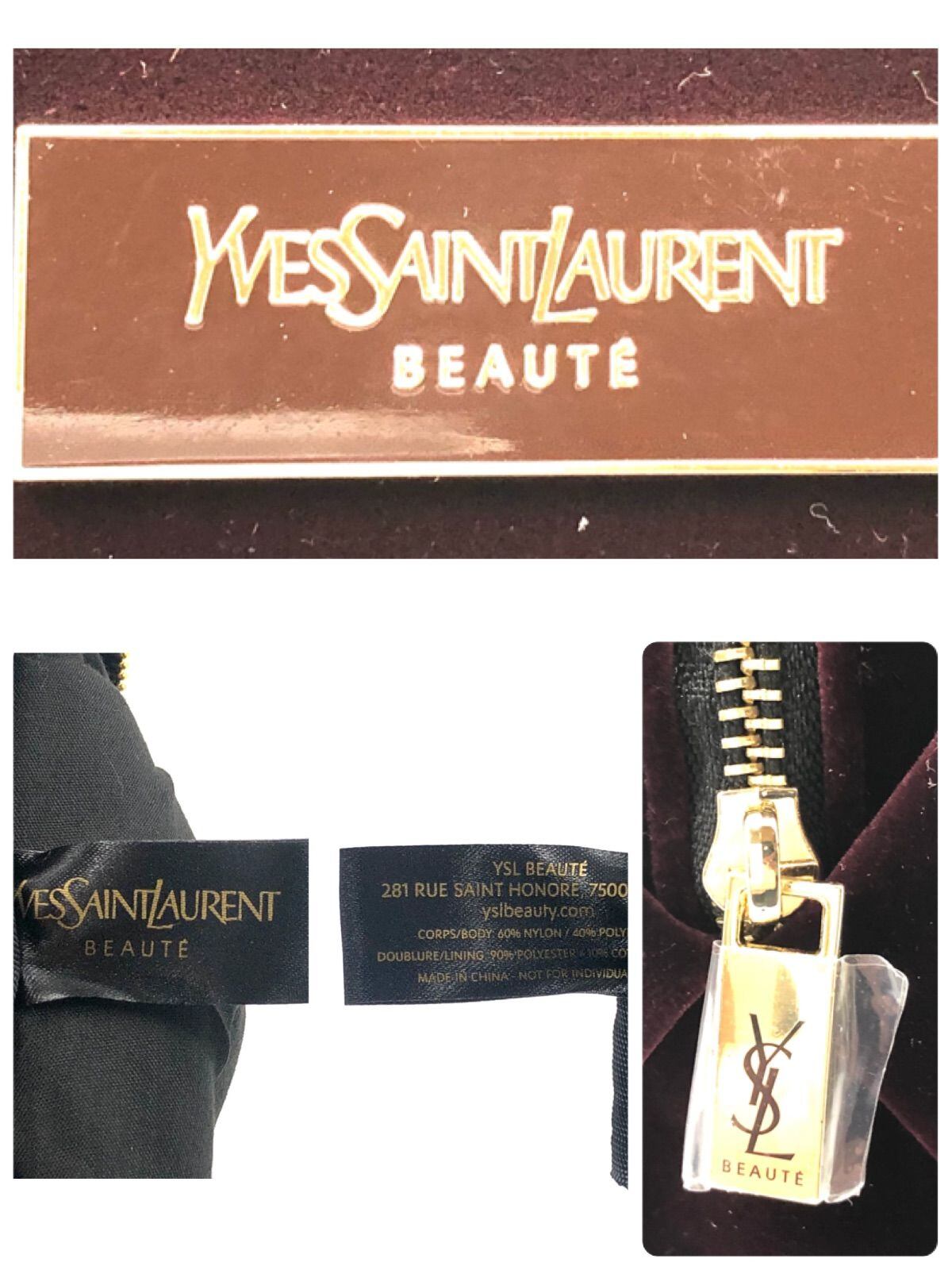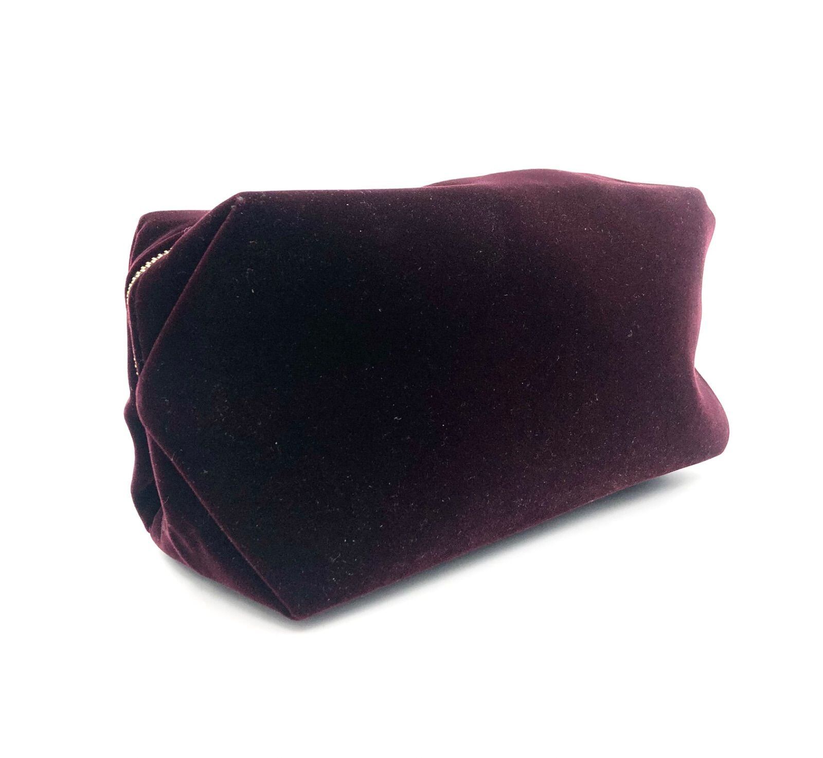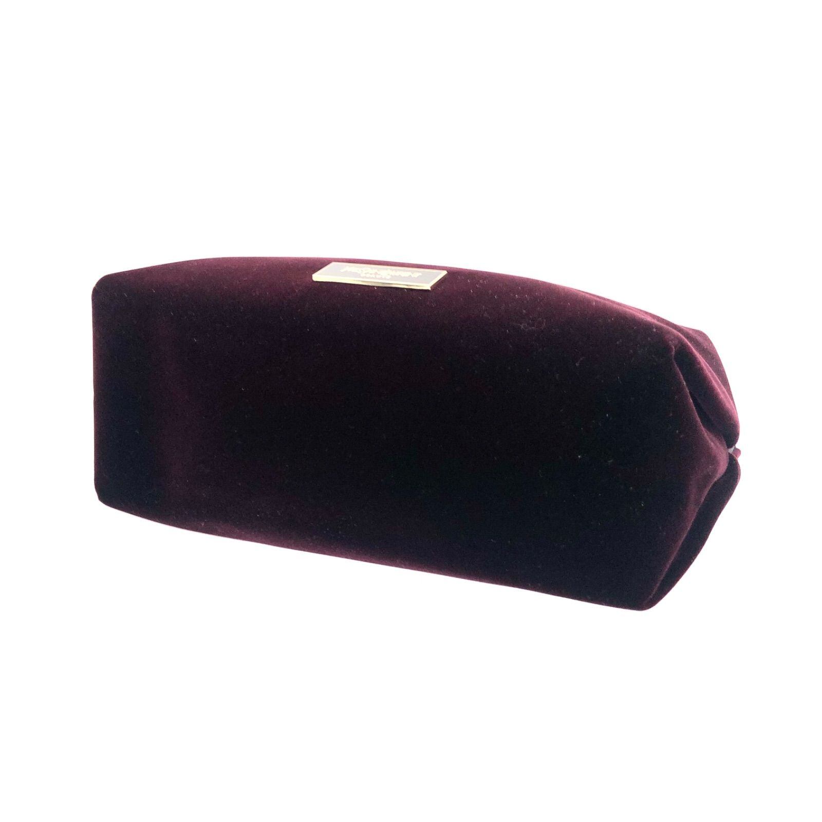 ■極美品■Yves saint Laurent イヴサンローラン ノベルティポーチ ナイロン、ポリエステル、コットン ベロア風 ロゴプレート ワインレッド レディース