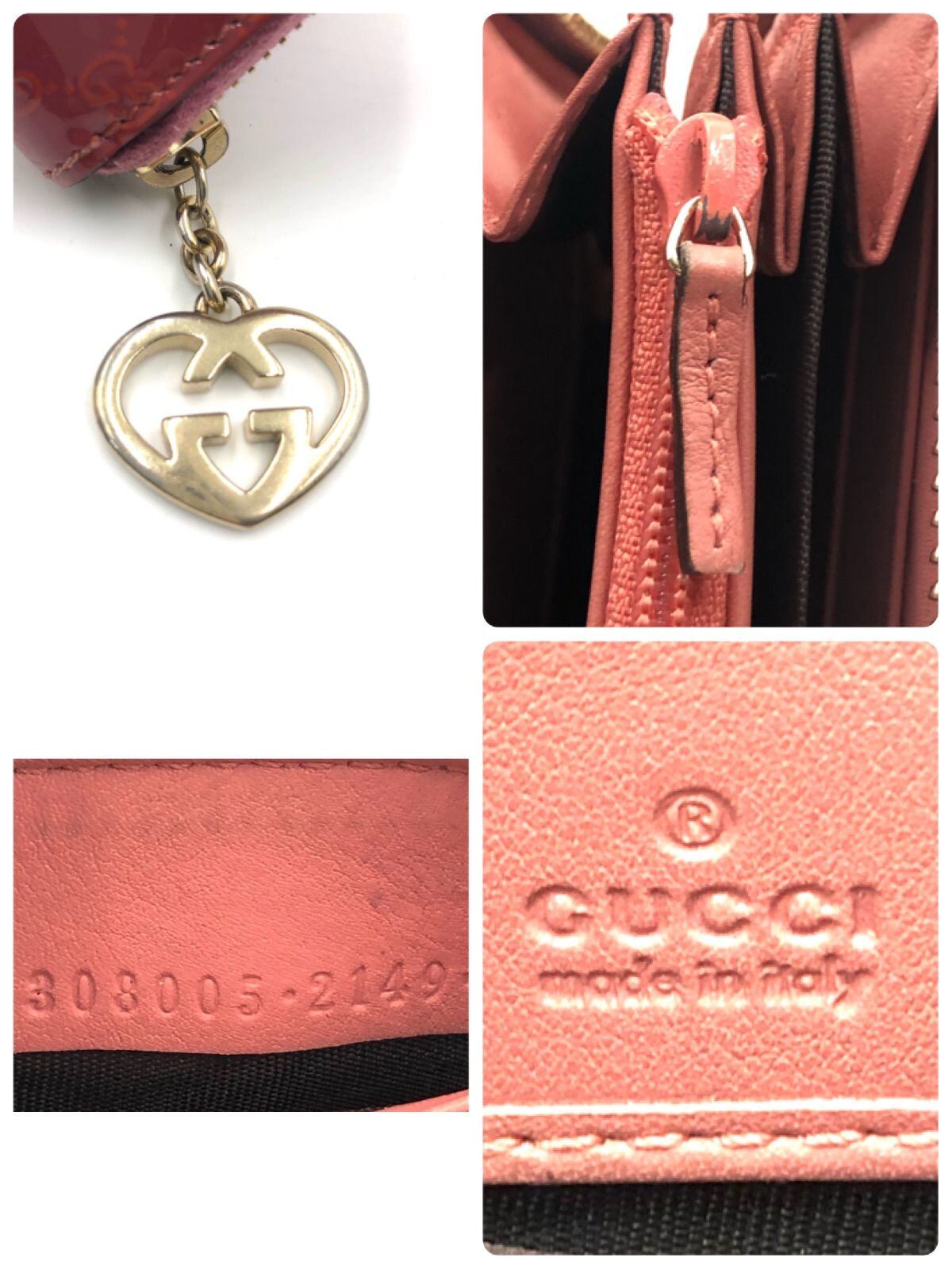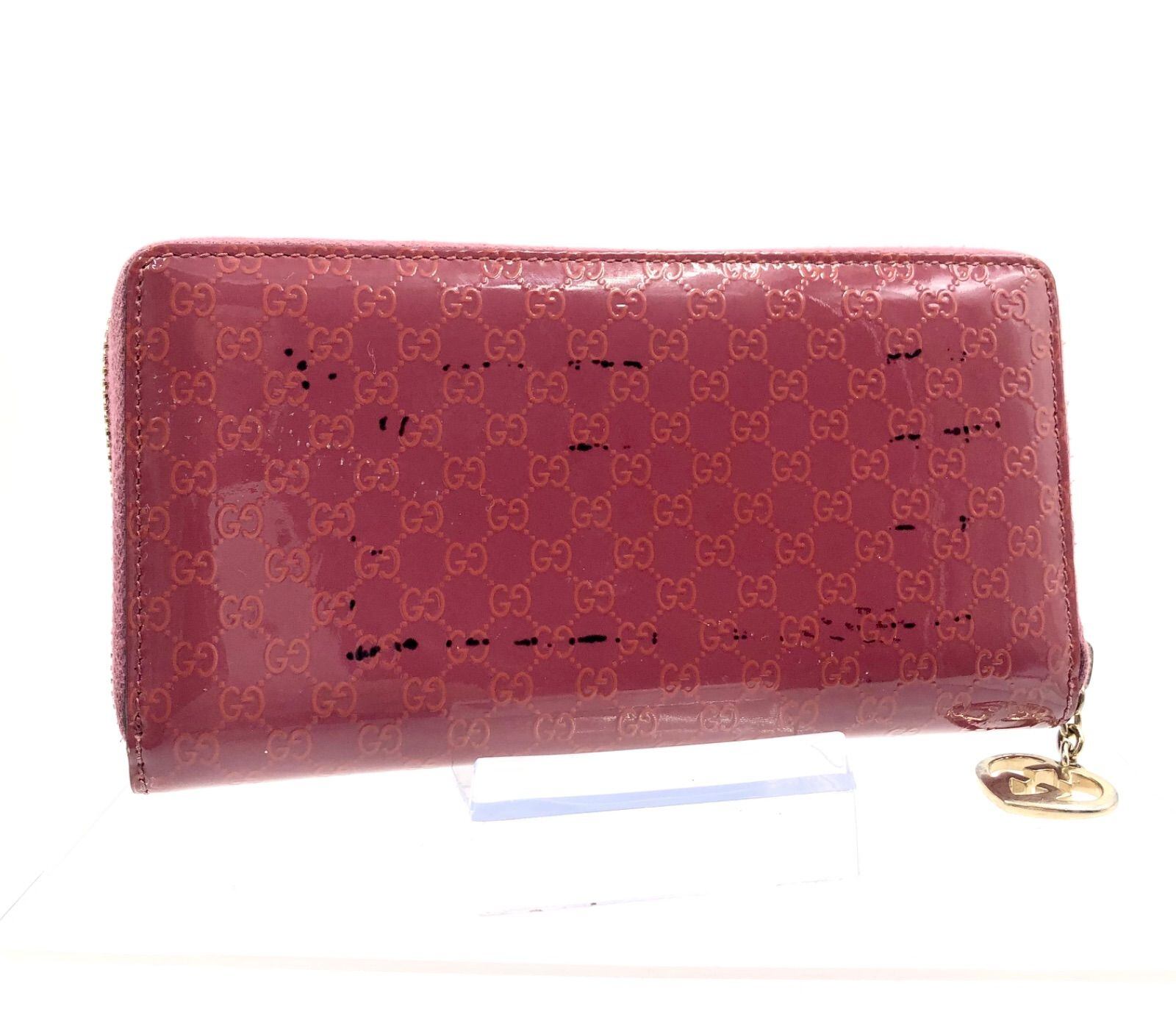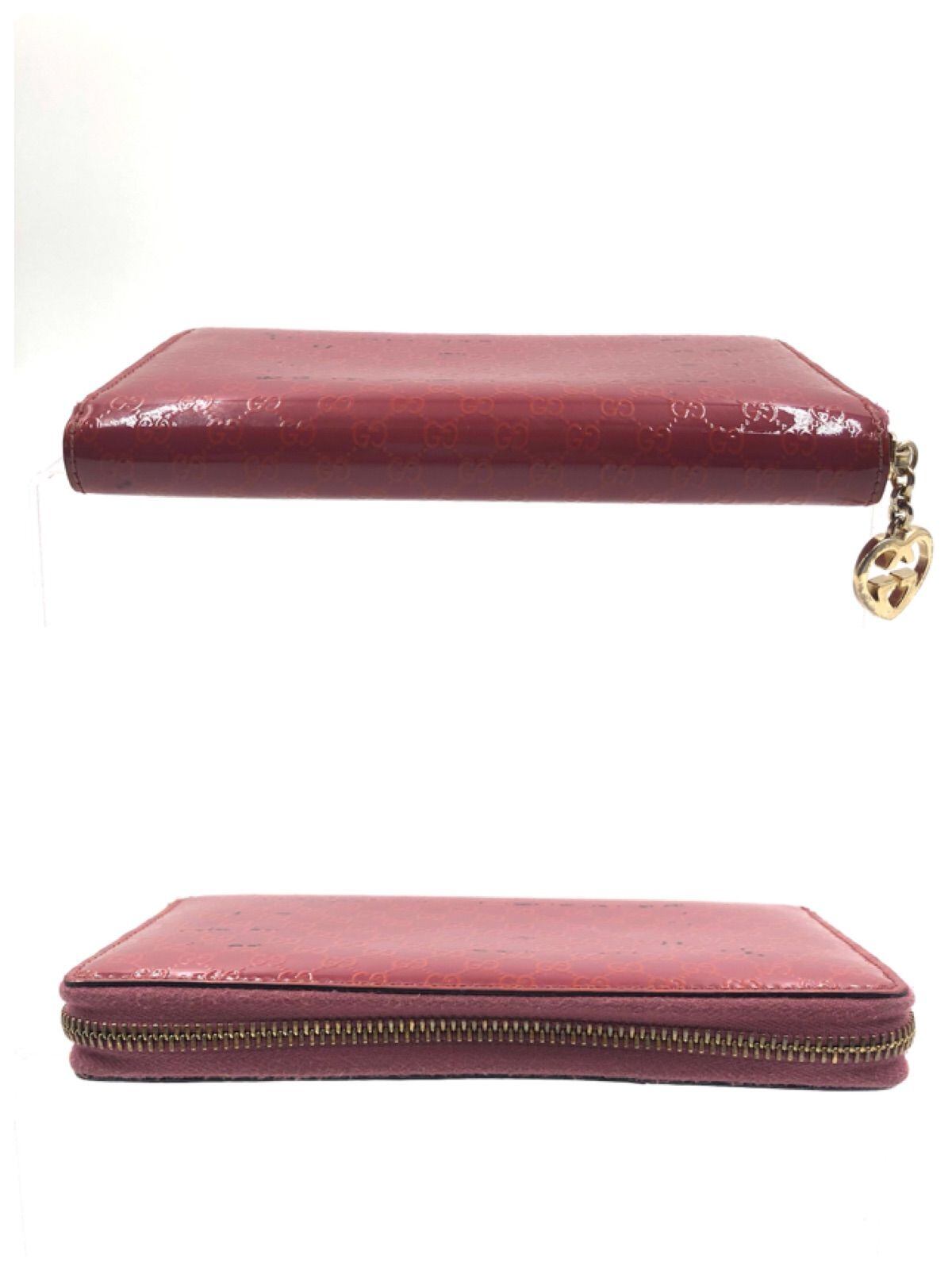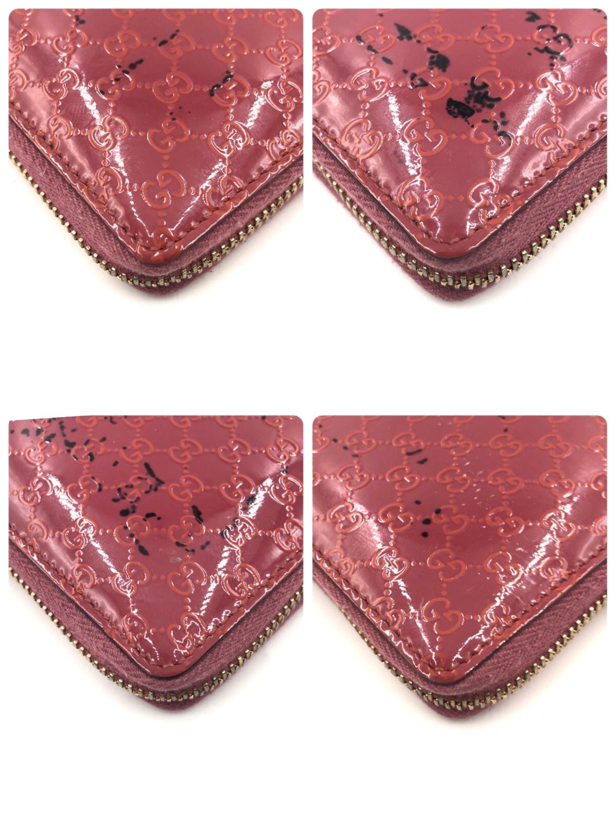 GUCCI グッチ マイクロGG ラウンドファスナー エナメル パテントレザー ピンク ゴールド金具 イタリア製 刻印あり レディース