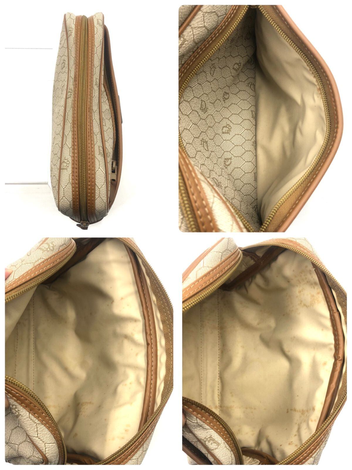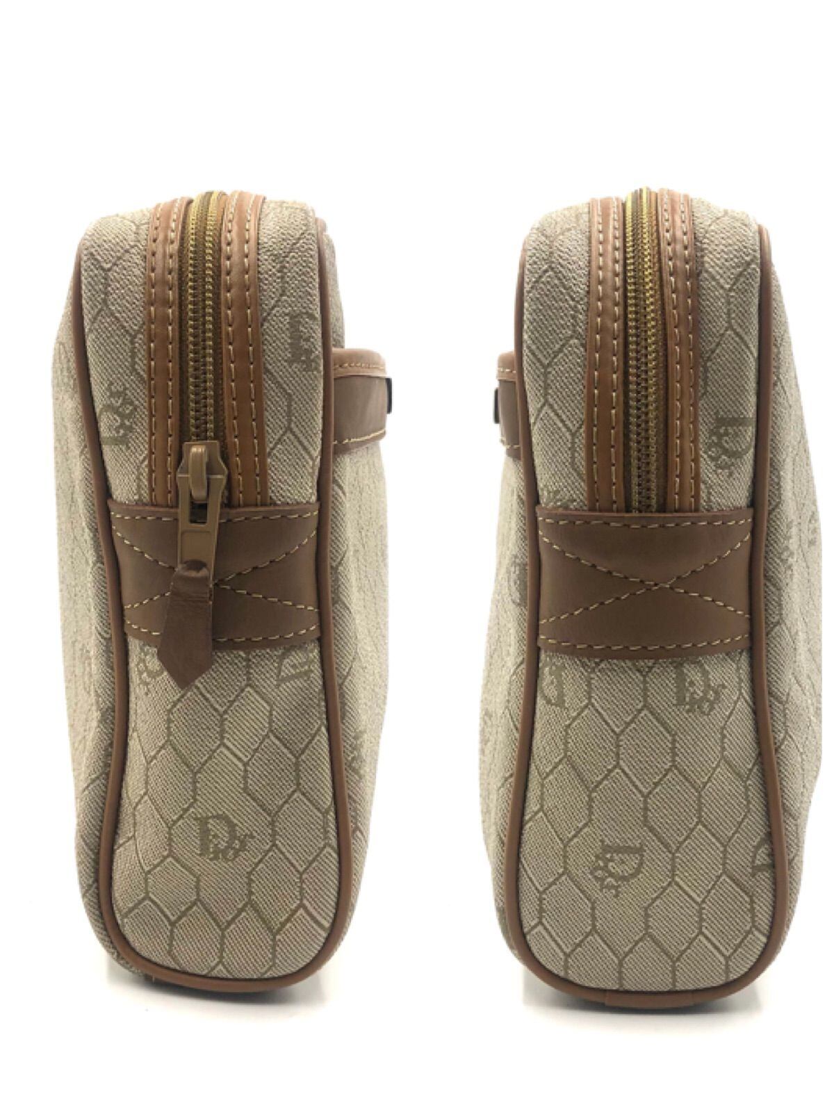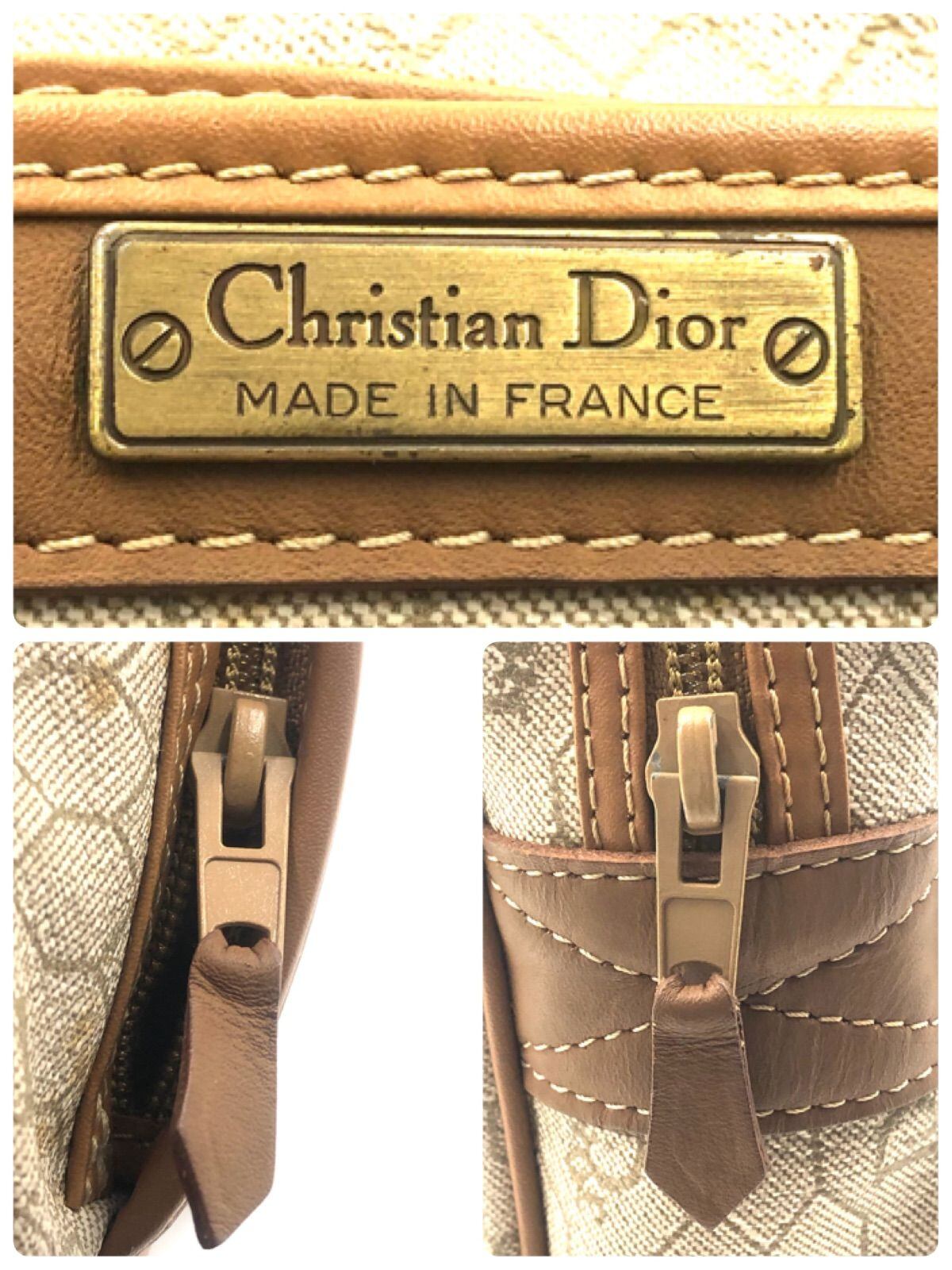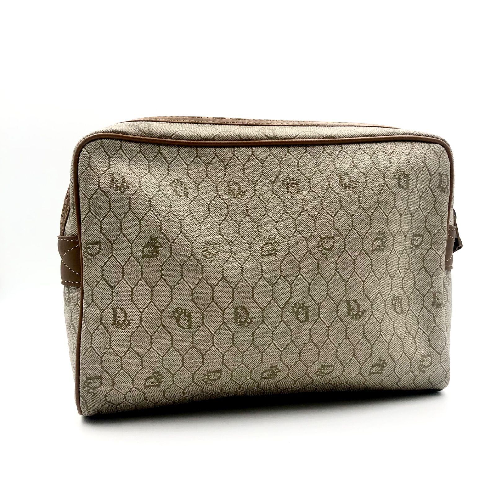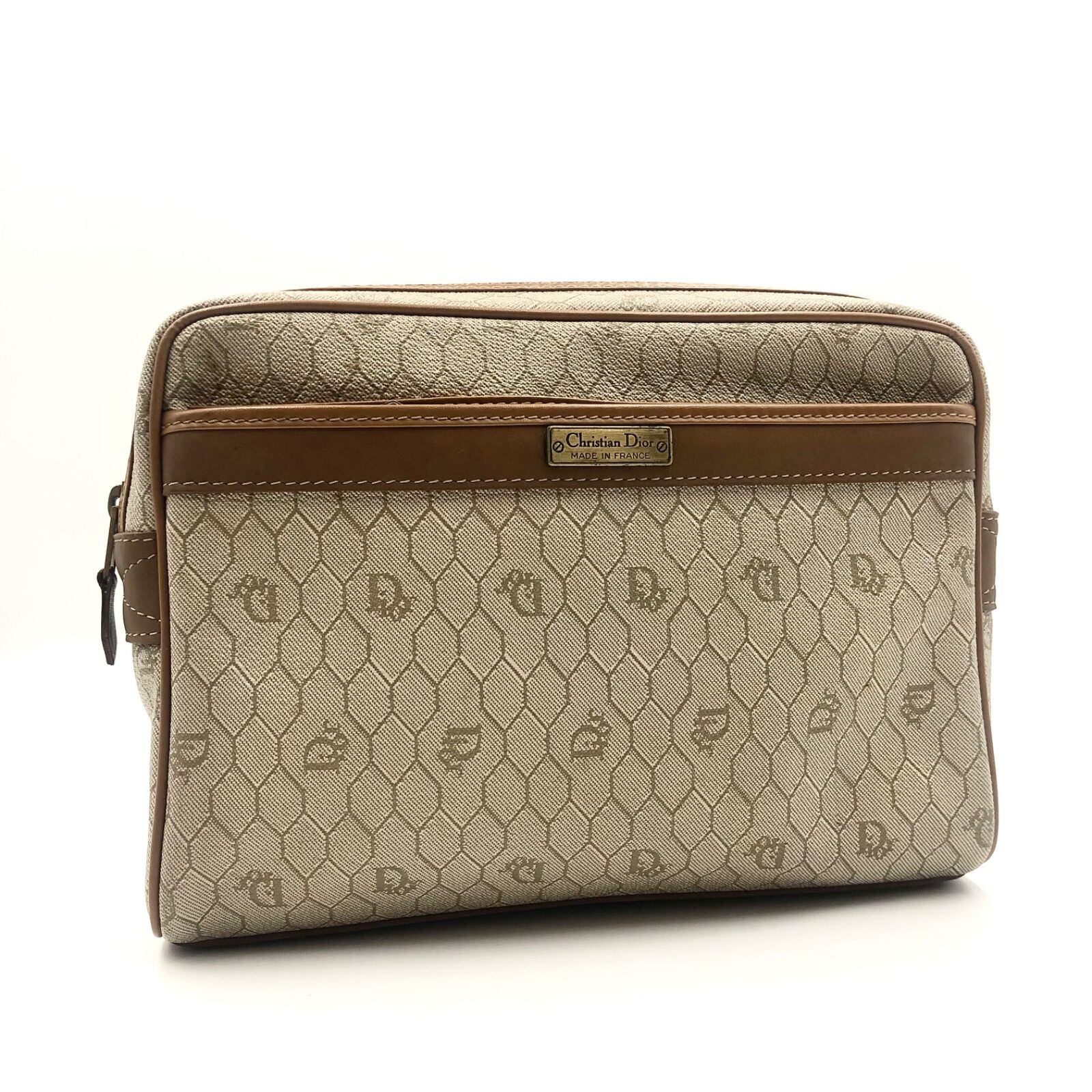 ■美品■Christian Dior クリスチャンディオール ハニカム柄 クラッチバッグ パーティーバッグ PVC×レザー ロゴプレート フランス製 ベージュ ゴールド金具 レディース
