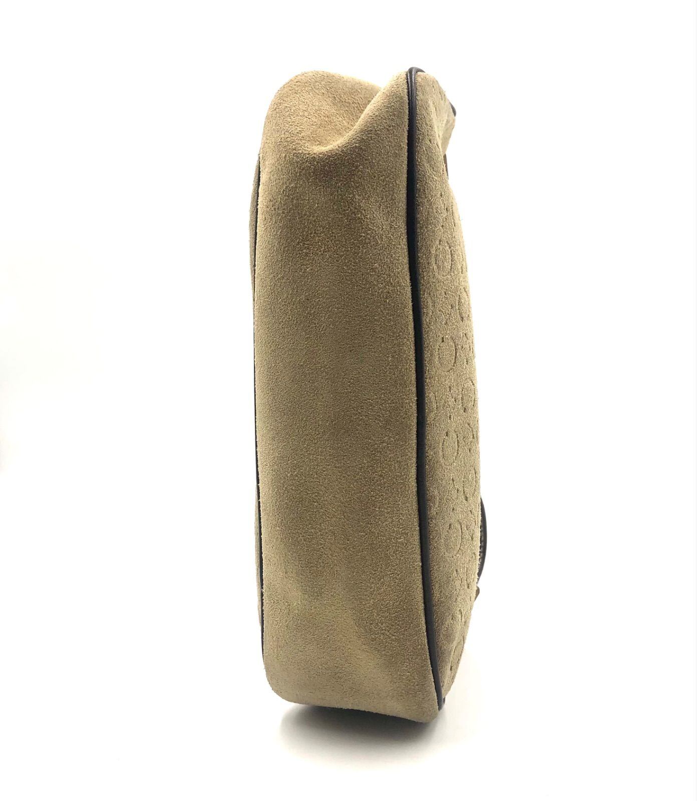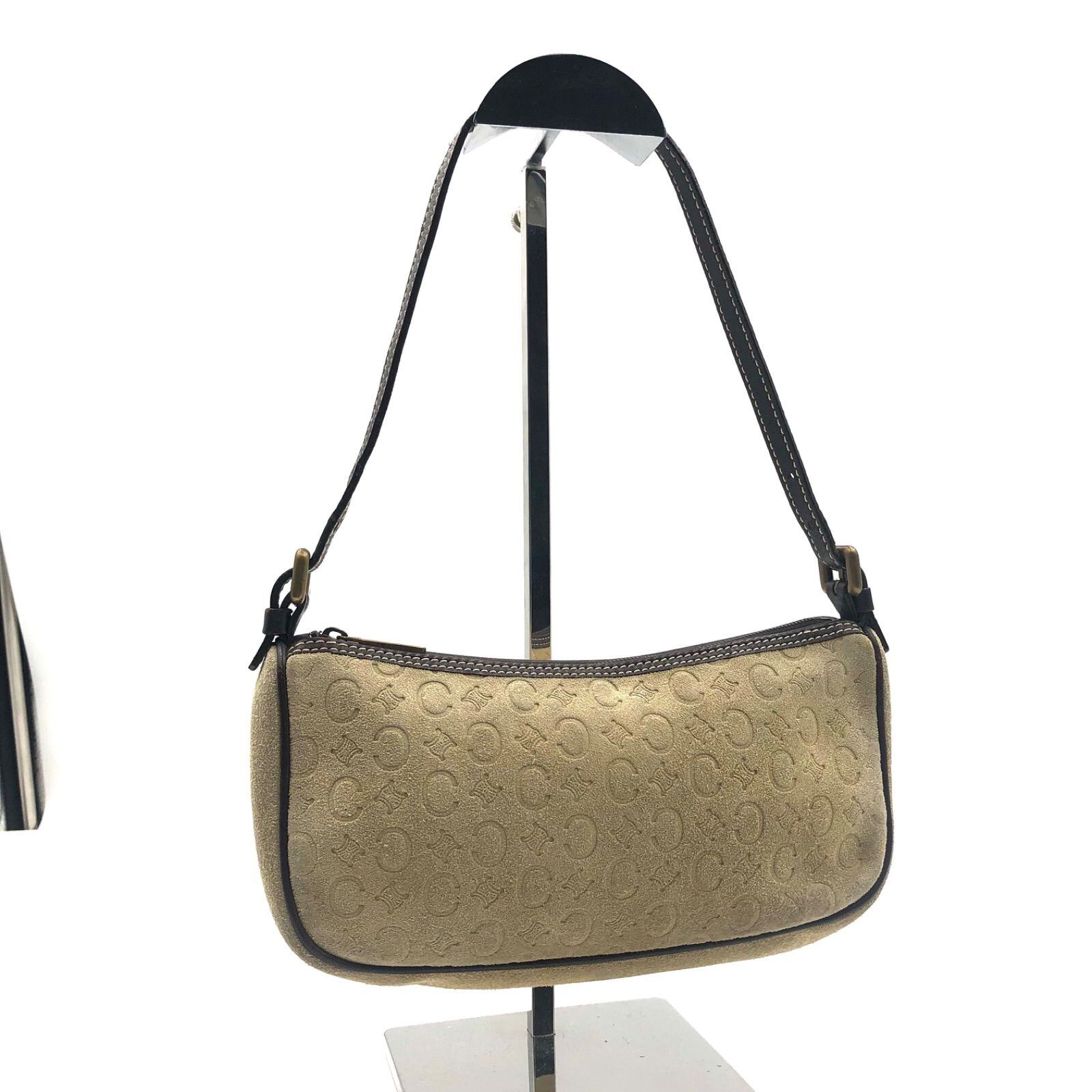 ■極美品■CELINE セリーヌ Cマカダム アクセサリーポーチ ミニハンドバッグ スエードレザー ロゴ型押し ベージュ系 イタリア製 刻印あり レディース