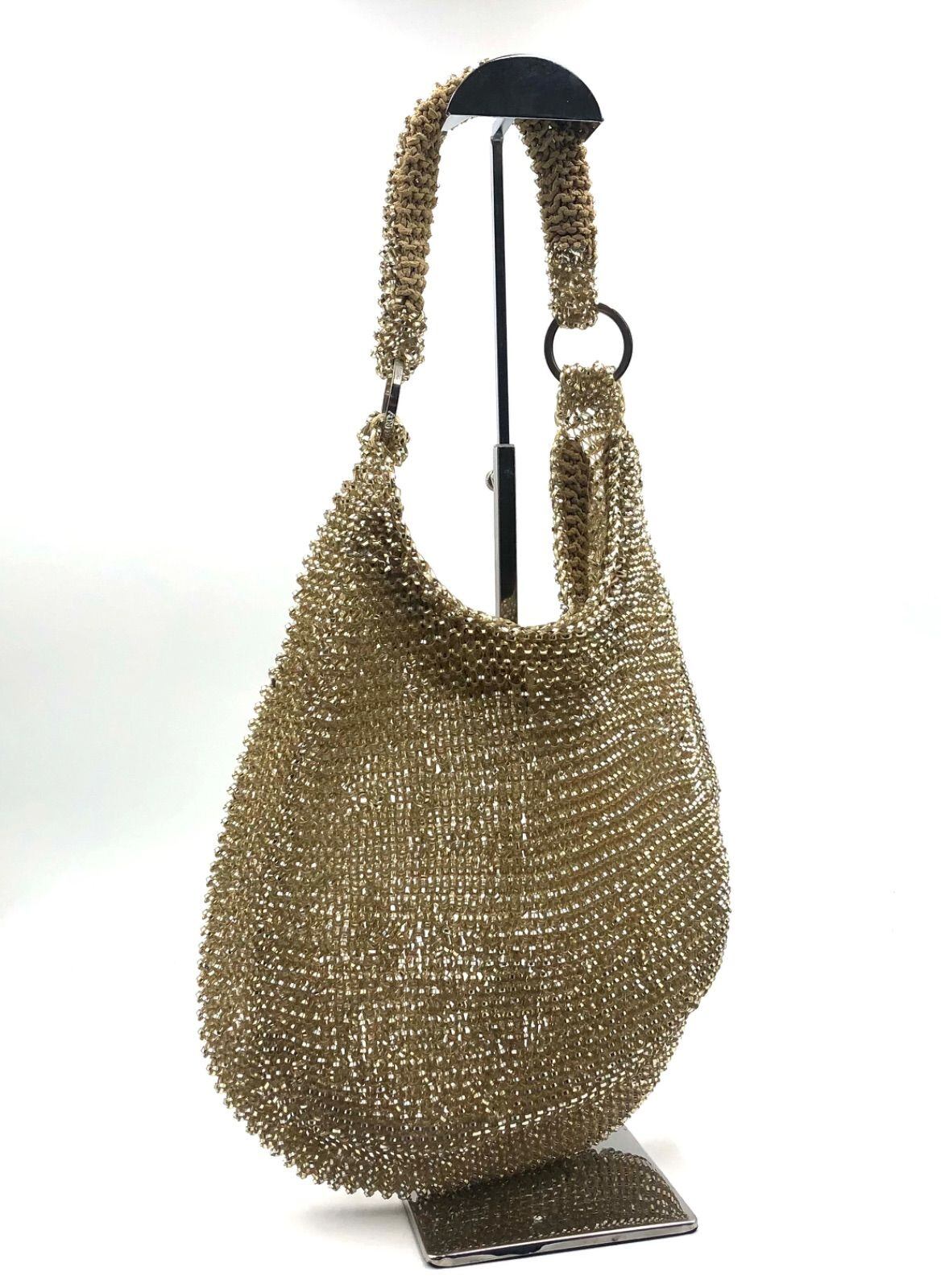 ■極美品■ANTEPRIMA アンテプリマ ワイヤーバッグ ワンショルダーバッグ ホーボー シャンパンゴールド シルバー金具 ハンドル根本ロゴリング タグあり レディース
